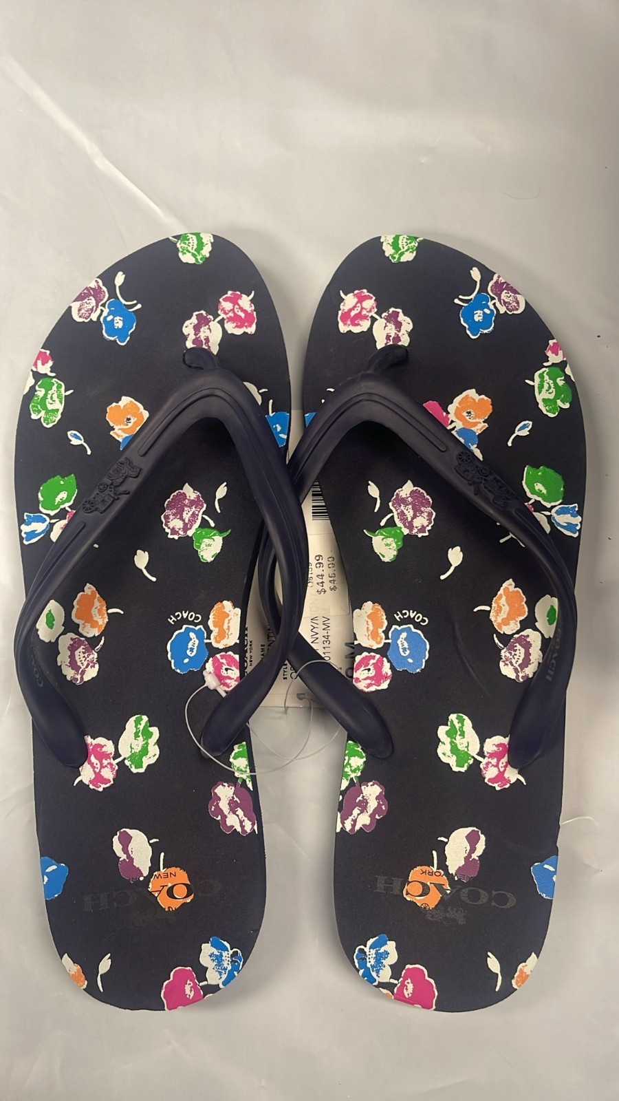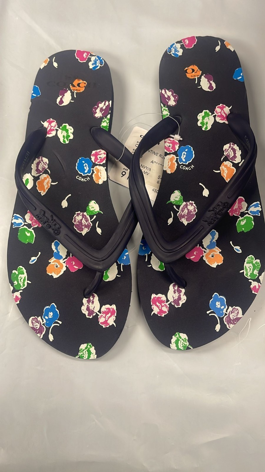 Coach Clementine Rubber Multi Stripe Flip Flops Women's Size 6 Azure Black NWT
