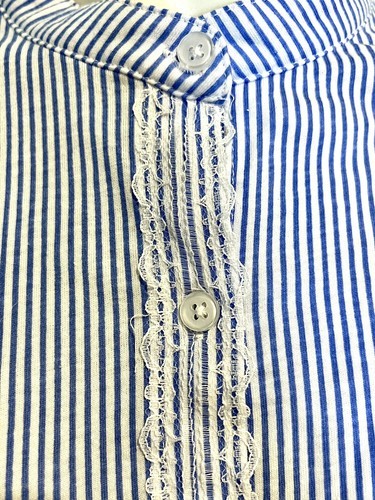 NWT Mesh + Lace Blue and White Striped Short Sleeve Knit Blouse Size M