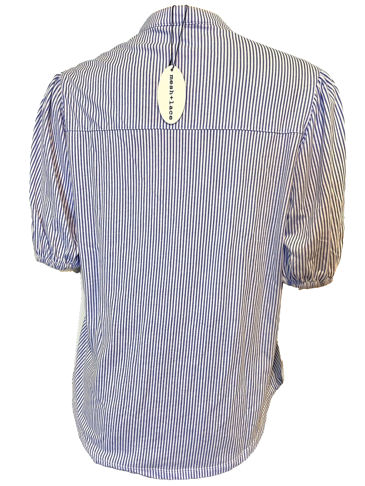 New with tags! Mesh + Lace Blue and White Striped Knit Blouse