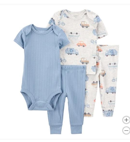 Each set includes (1) shirt, (1) bodysuit, (2) pants