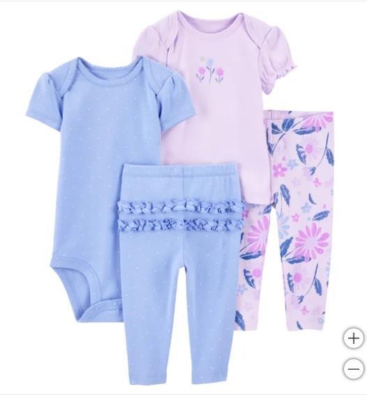 Carter's Boys Girls Layette Set Purple 4-Piece Bodysuit Top Flowers UnisexDescription