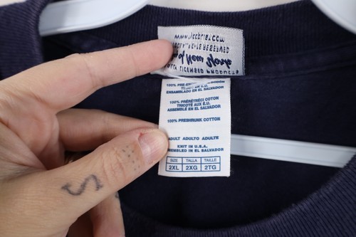 Blemishes/dark spots, sun faded throughout. Collar, arms discolored. Design distressed. Color faded. Pilling