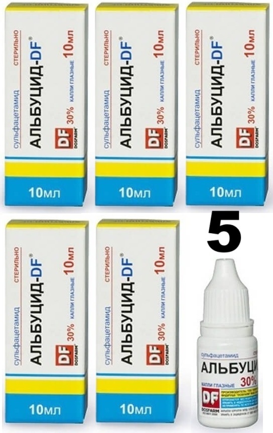 For the treatment and prevention of infectious eye diseases: - for adults, Albucid-DF 30% solution is instilled into the eyes 1-2 drops 2-3 times a day, after the disappearance of the acute purulent-inflammatory process, 1-2 drops are instilled 3 times a day - for children from 1 year old, Albucid-DF 20% solution is used 1-2 drops 4-5 times a day, after the disappearance of the acute purulent-inflammatory process, 1-2 drops are instilled 3 times a day. The course of treatment is 5-7 days. To prevent blennorrhea in newborns, immediately after birth, 2 drops of a 20% solution of the drug are instilled into each eye, and then 2 drops after 2 hours.