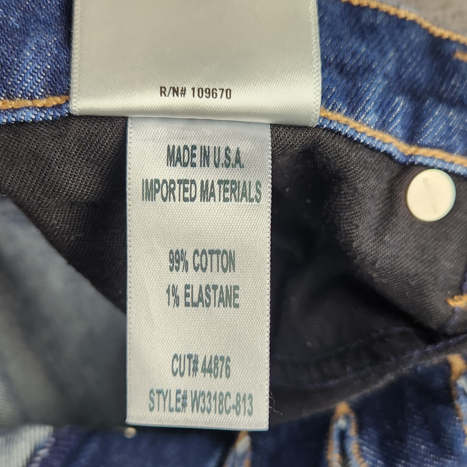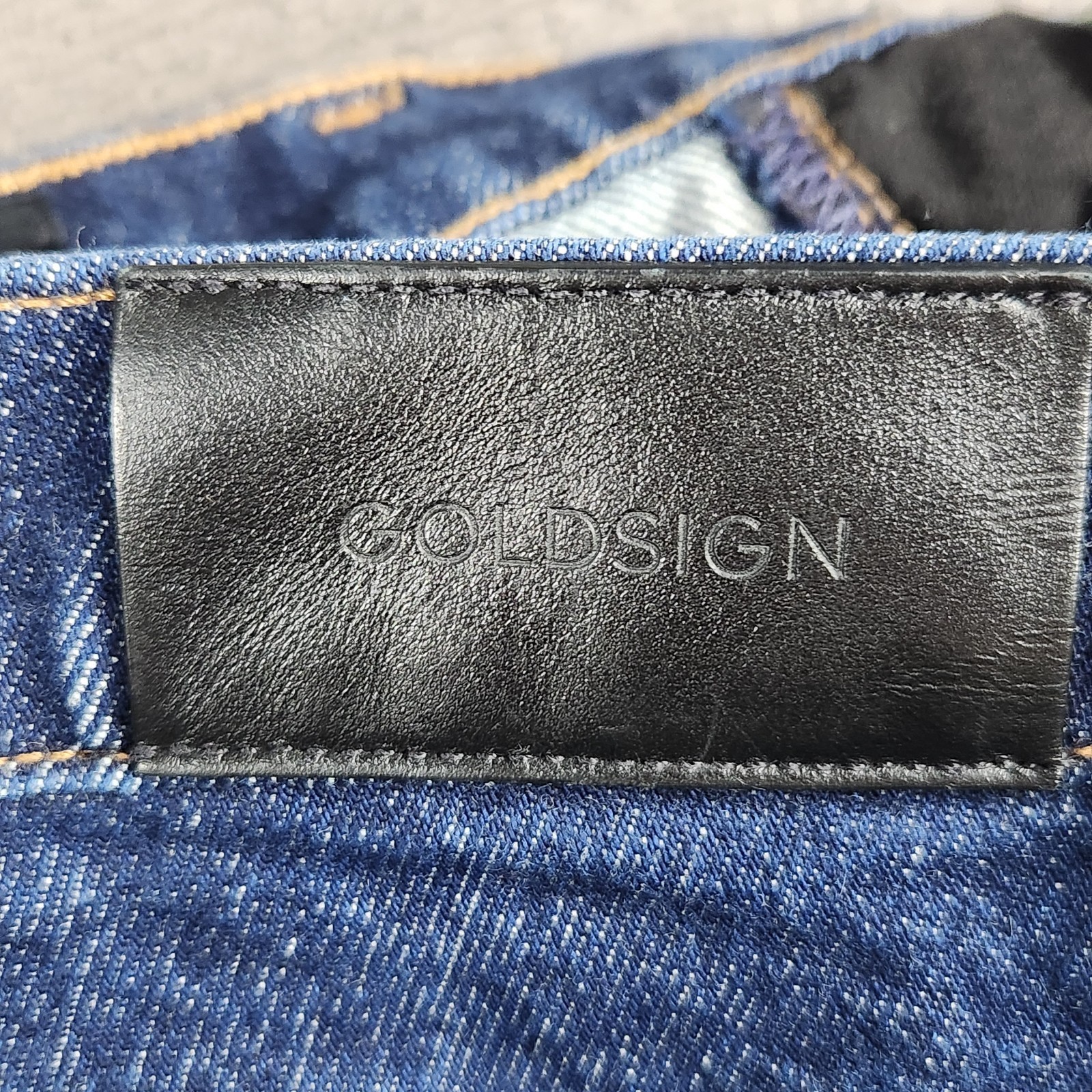 Elevate your denim collection with these stylish Goldsign jeans. Crafted from a comfortable and stretchy blend of cotton and spandex, these straight-leg jeans feature a button fly closure and a 5-pocket design. The dark wash blue color and embroidered logo accents add a touch of sophistication to your look.