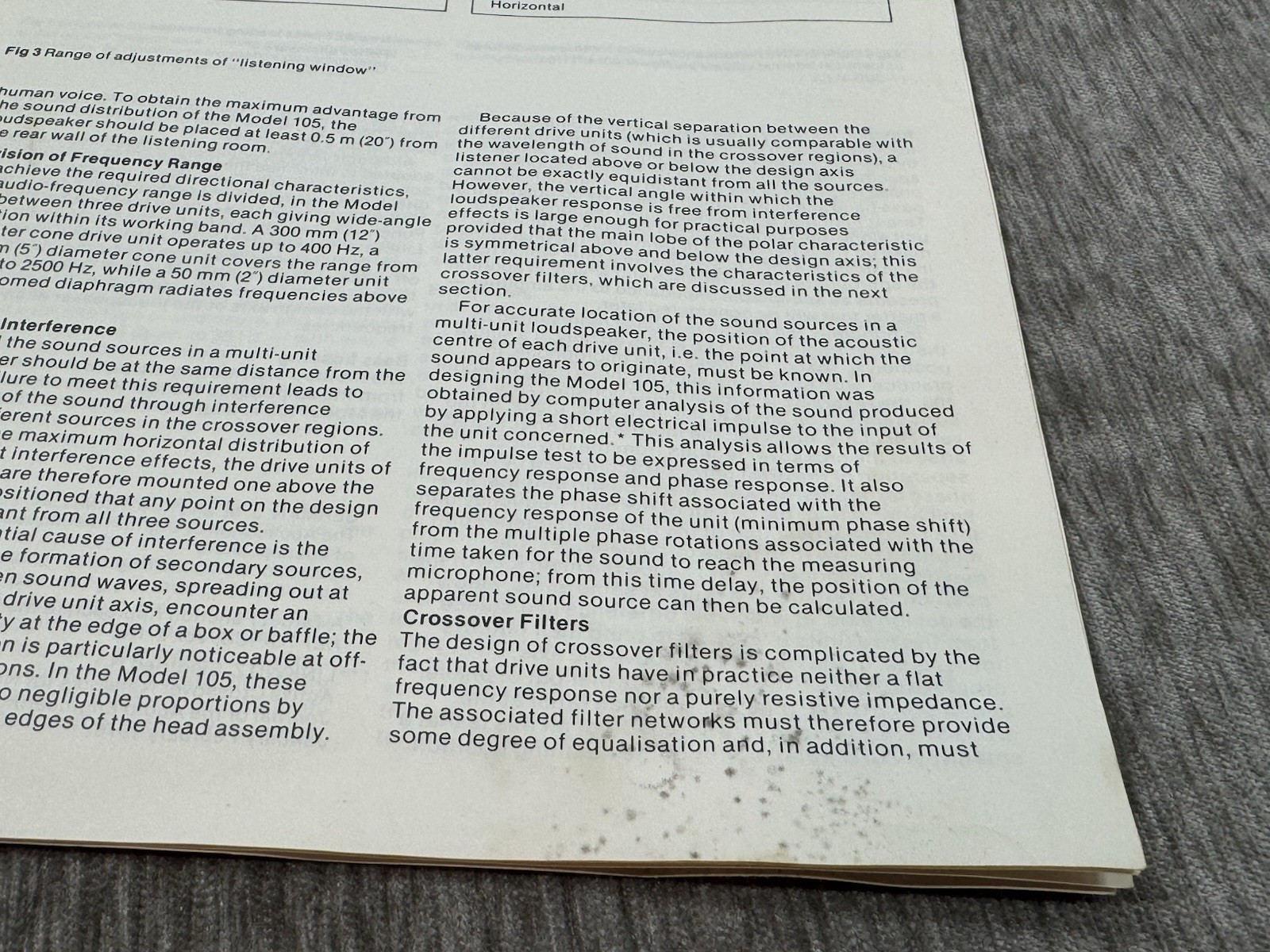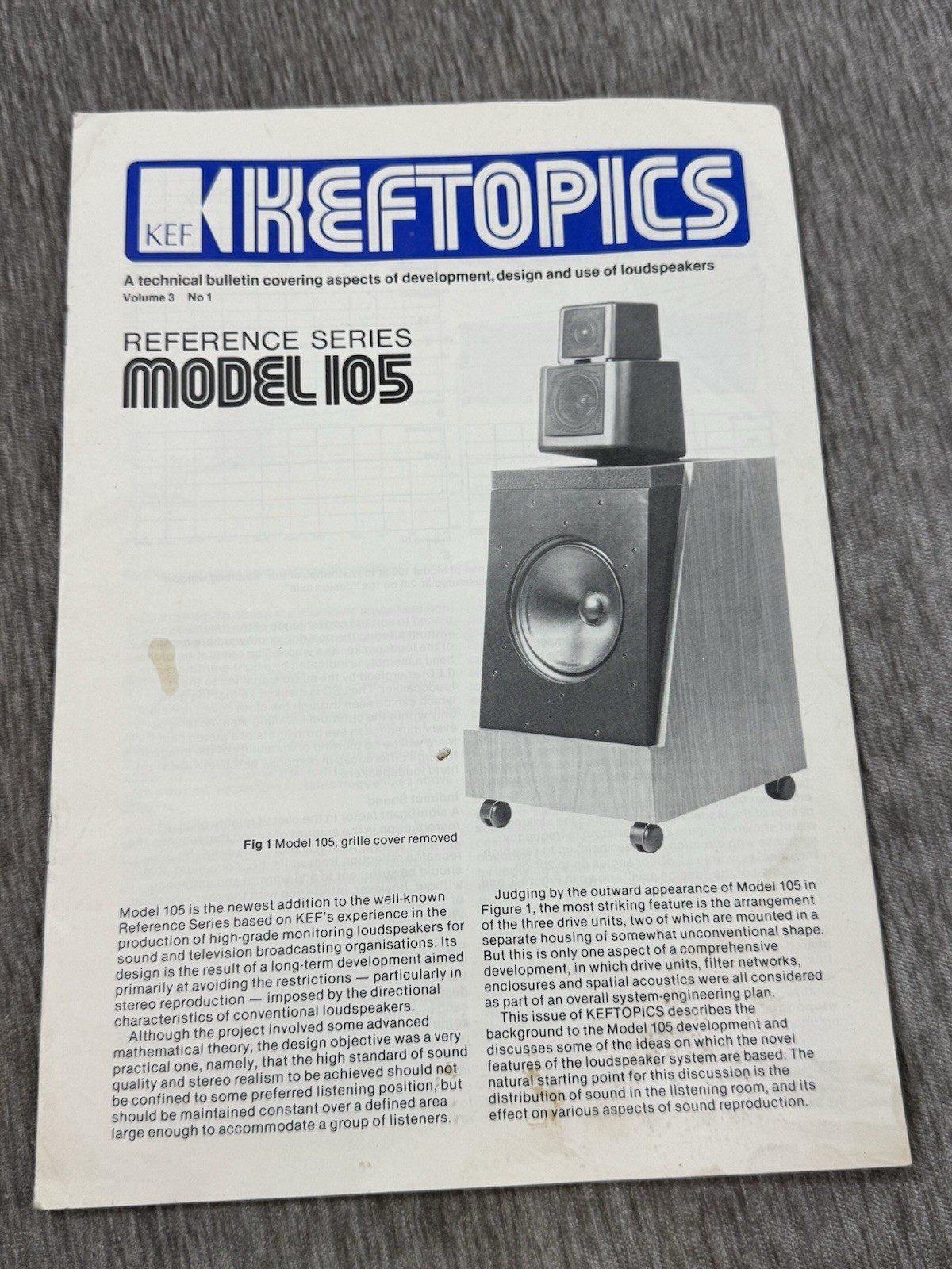 For sale is a Vintage KEF Model 105 Series II Installation Instructions Booklet a Technical Bulletin Vol. 3 No. 1. These are original!