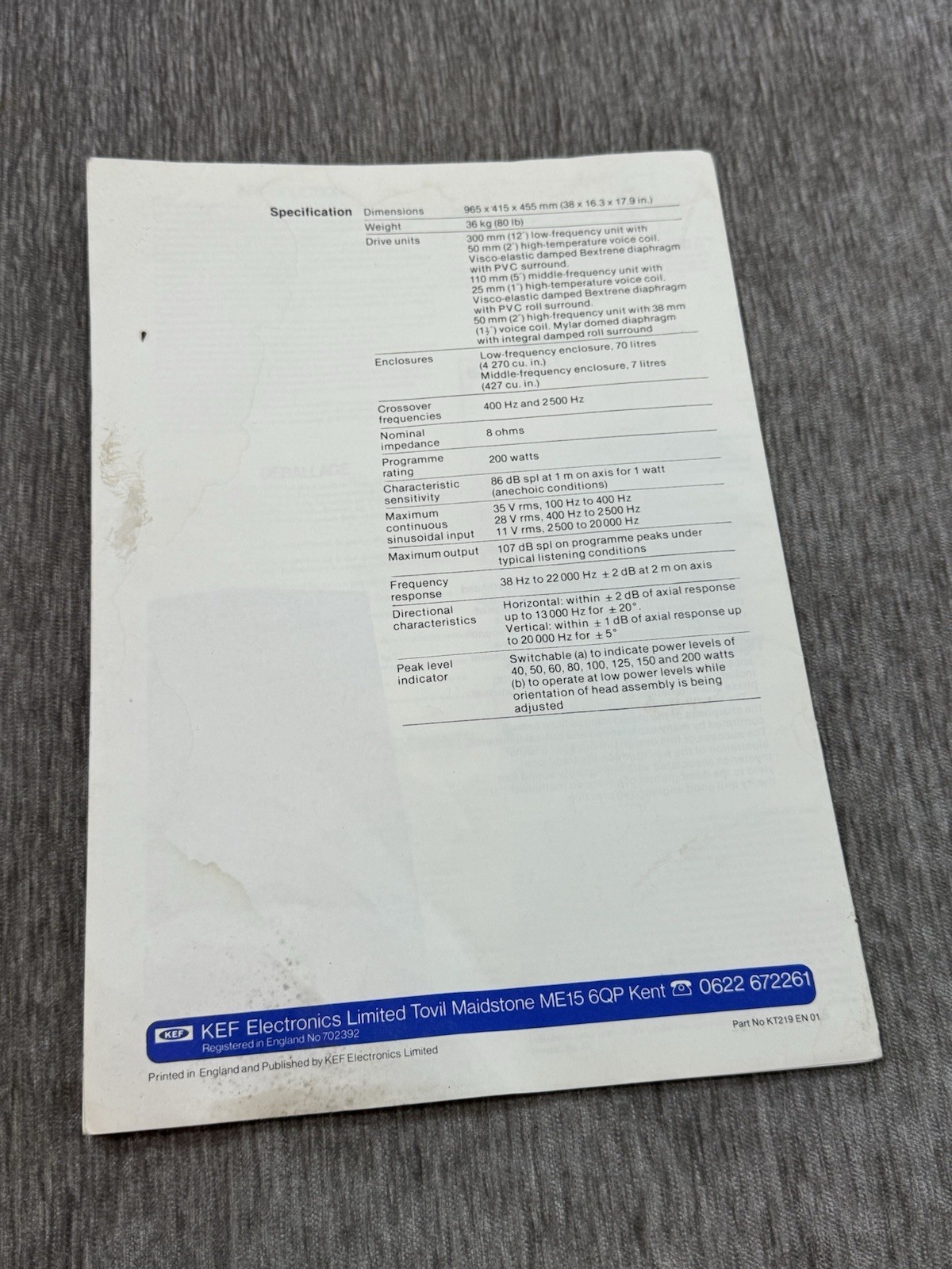 Vintage KEF Model 105 Series II Installation Instructions Booklet & Technical