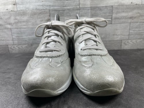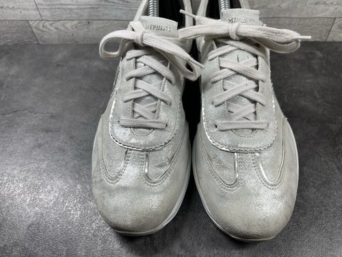 Mephisto Sneakers Women 8.5 M Yael Shoes Metallic Silver Gray Suede Trainers