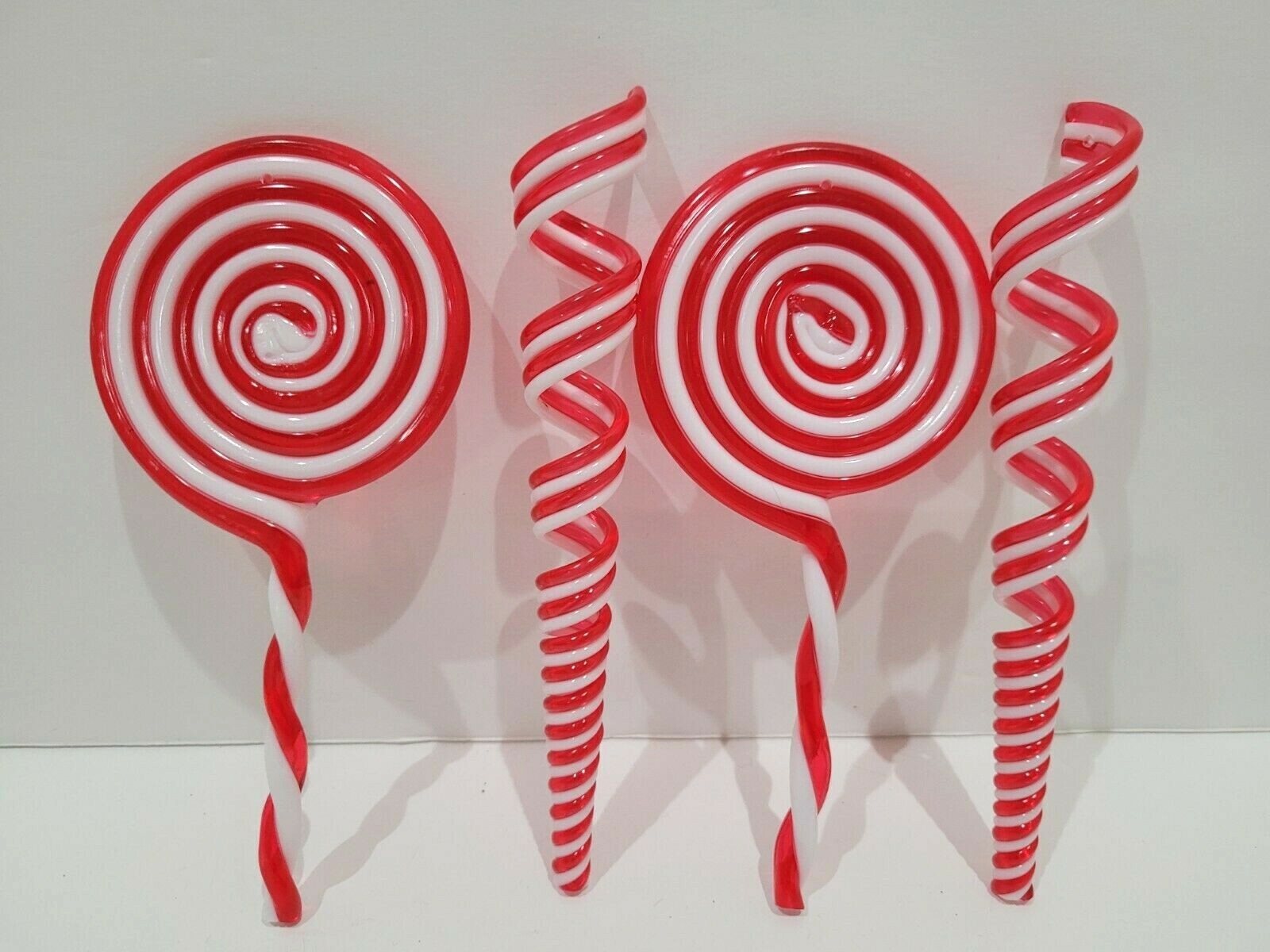 Christmas Peppermint Candy Cane Gingerbread Sweets Red White Ornaments Picks 2pc
