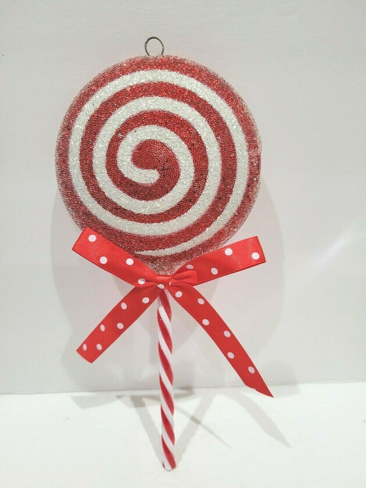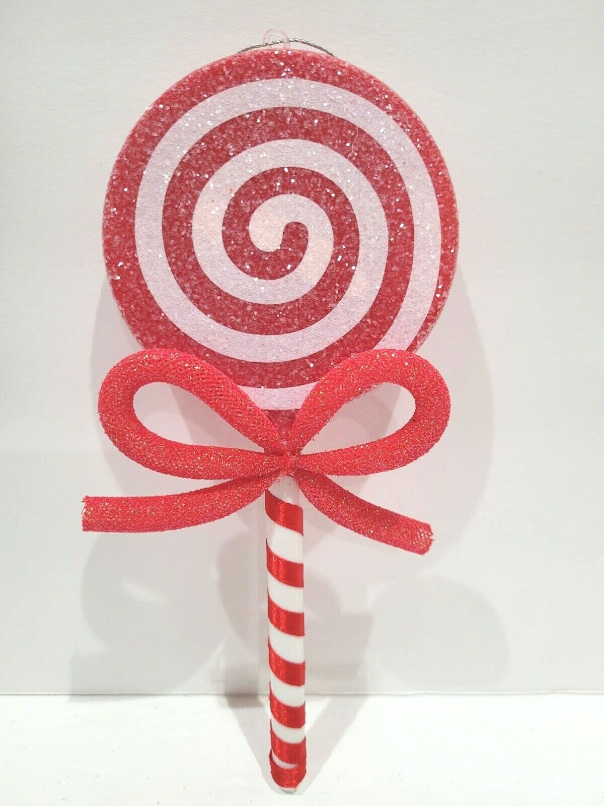 Up for sale we have (2) adorable red and white candy picks with a cute red bow. The candy pick would look amazing on a peppermint or gingerbread theme tree. It is made of styrofoam and covered in fabric. it measures approx 10" tall including the stick and the candy is approx 8.5" wide. See pictures 4-9 for just some of my other ornaments available.