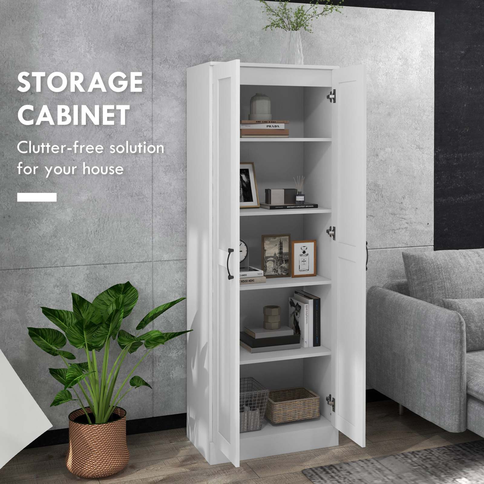 HOMCOM 69" White Tall Storage Cabinet w/ Movable Shelves & Soft Close Doors