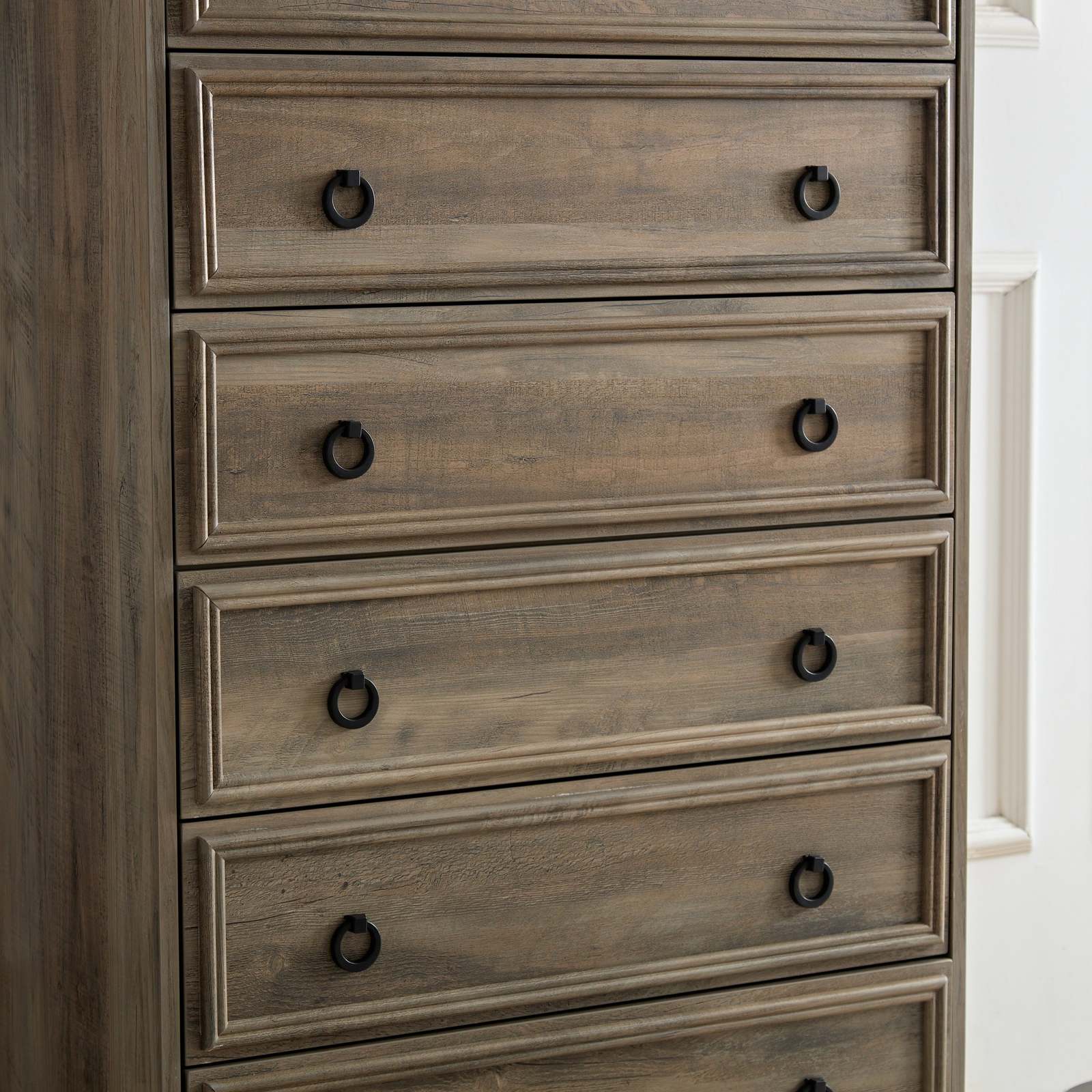 ?Ample storage space? Assembled dimension: 29.53*15.75*48.03. This wood dresser is designed with a spacious interior. The drawers won't collide or collapse. And the chest provides an appropriate height to place the potted plant or a printer.