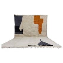 Handmade Vintage Moroccan Berber Rug | 8'5" 11'8" (257 cm 357 cm) | 1980s Spacious Moroccan Berber Weaving in Warm Tones This generous, vintage Moroccan Berber rug from the 1980s brings bold tribal artistry to any interior. Handwoven from premium natural wool, its expansive field is full of expressive warmth and texture. The larger size ensures it makes a statement while remaining harmonious in freshly styled, global-chic settings. Dynamic Color Palette and Geometric Expression The rug?s design features wide bands in pale green and off-white, balanced by a large triangular panel in vibrant orange. These segments merge with layered patterns in warm black and orange, overlaid with crisp white motifs. The result is a carefully balanced composition that radiates both harmony and energy. Robust Craftsmanship Meets Vintage Patina Measuring approximately 8'5" 11'8" (257 cm 357 cm), this rug serves as both a functional floor covering and an eye-catching textile artwork. The wool pile retains softness and visual depth, while minimal signs of wear add authenticity and character without compromising durability. A Bold Statement for Curated Interiors Ideal for expansive living areas or gallery-style interiors, this rug grounds a room with warmth and graphic intrigue. Its charismatic palette and bold geometry make it a timeless accent?suitable for both modern artistic spaces and textured, eclectic decor schemes. Key InformationMaterial: 100% wool, hand-wovenOrigin: Morocco, Berber weaving traditionAge: 1980sDesign: Wide colored bands and triangular form with tribal motifsCondition: Excellent vintage condition; shows minimal, characterful wearSize: 8'5" 11'8" (257 cm 357 cm)Use: Statement floor covering, textural anchor, design centerpiece