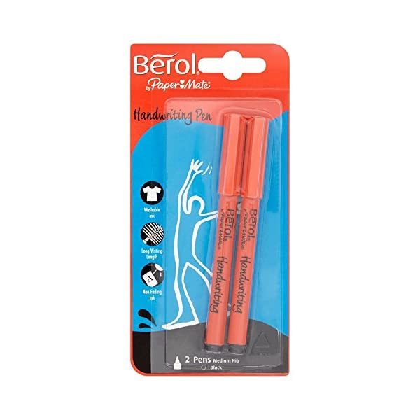 Product Name: Berol Handwriting Pen Clip Cap Medium Nib 0.6mm - Black (Pack of 2)