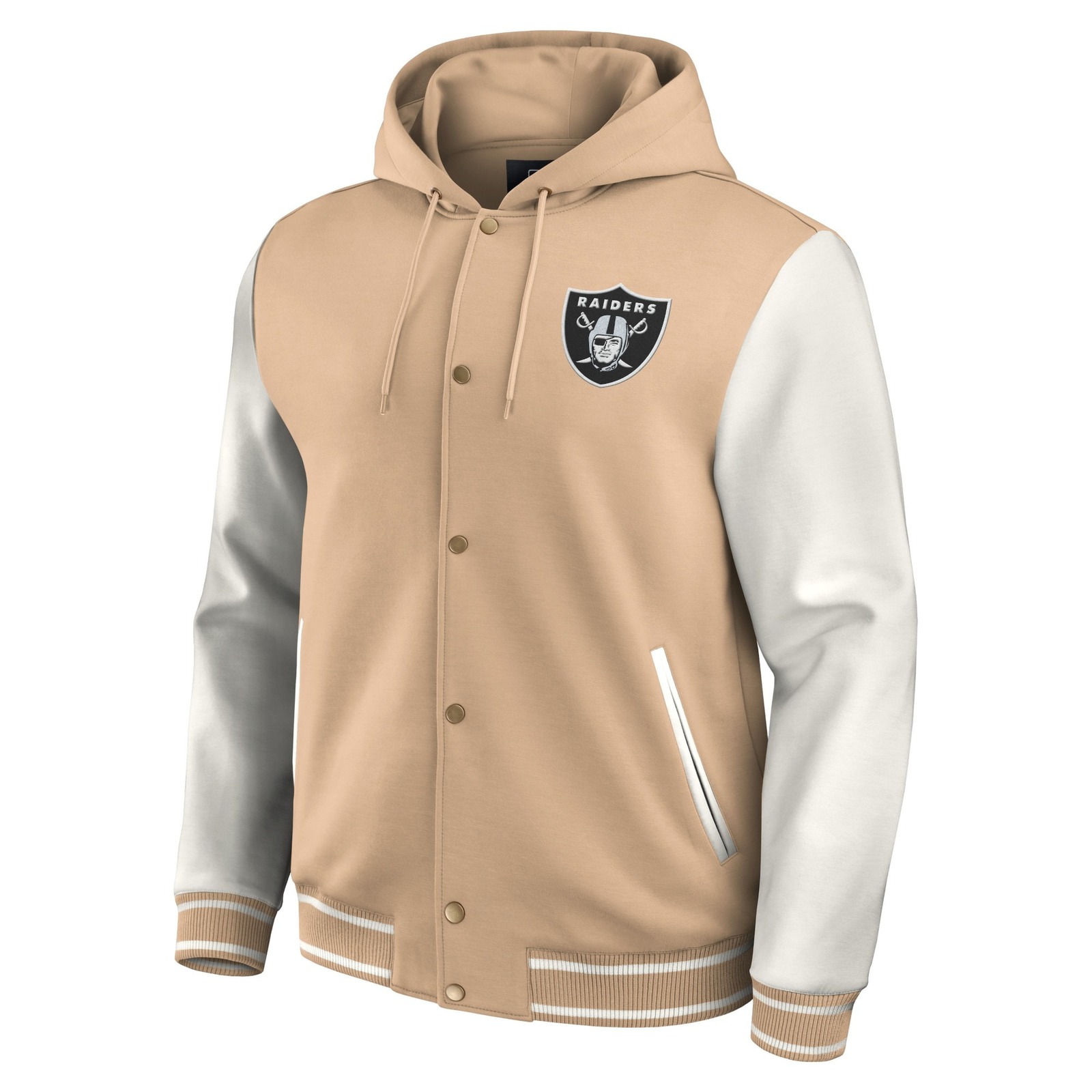 New Mens Las Vegas Raiders Tri-Blend Full-Snap Hoodie Baseball Jacket Darius Rucker Collection Tan