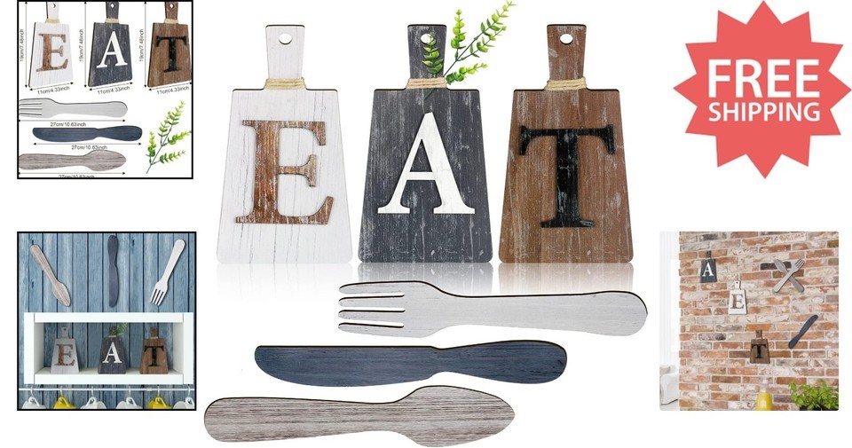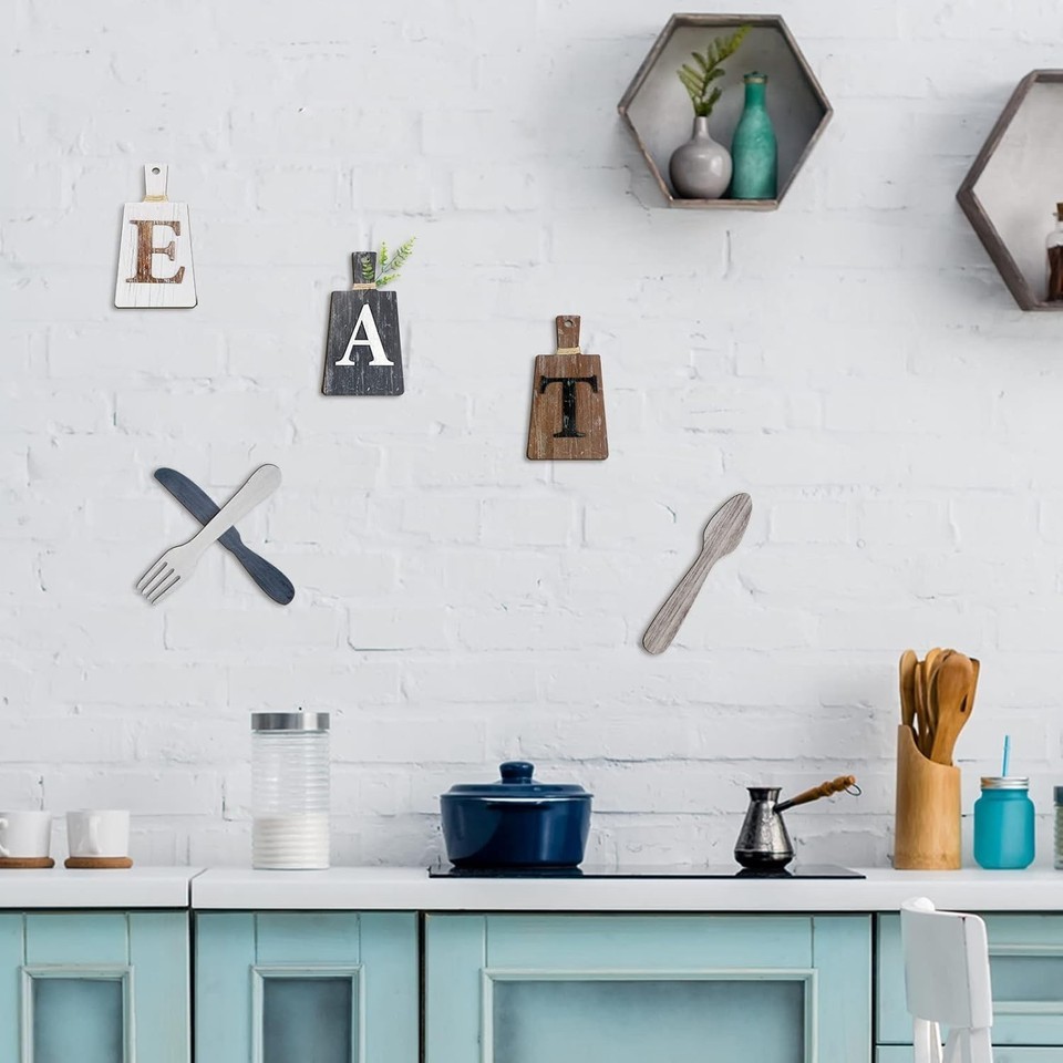 6-Piece Rustic Kitchen Eat Sign Set with Fork and Spoon Decor - Classic Style