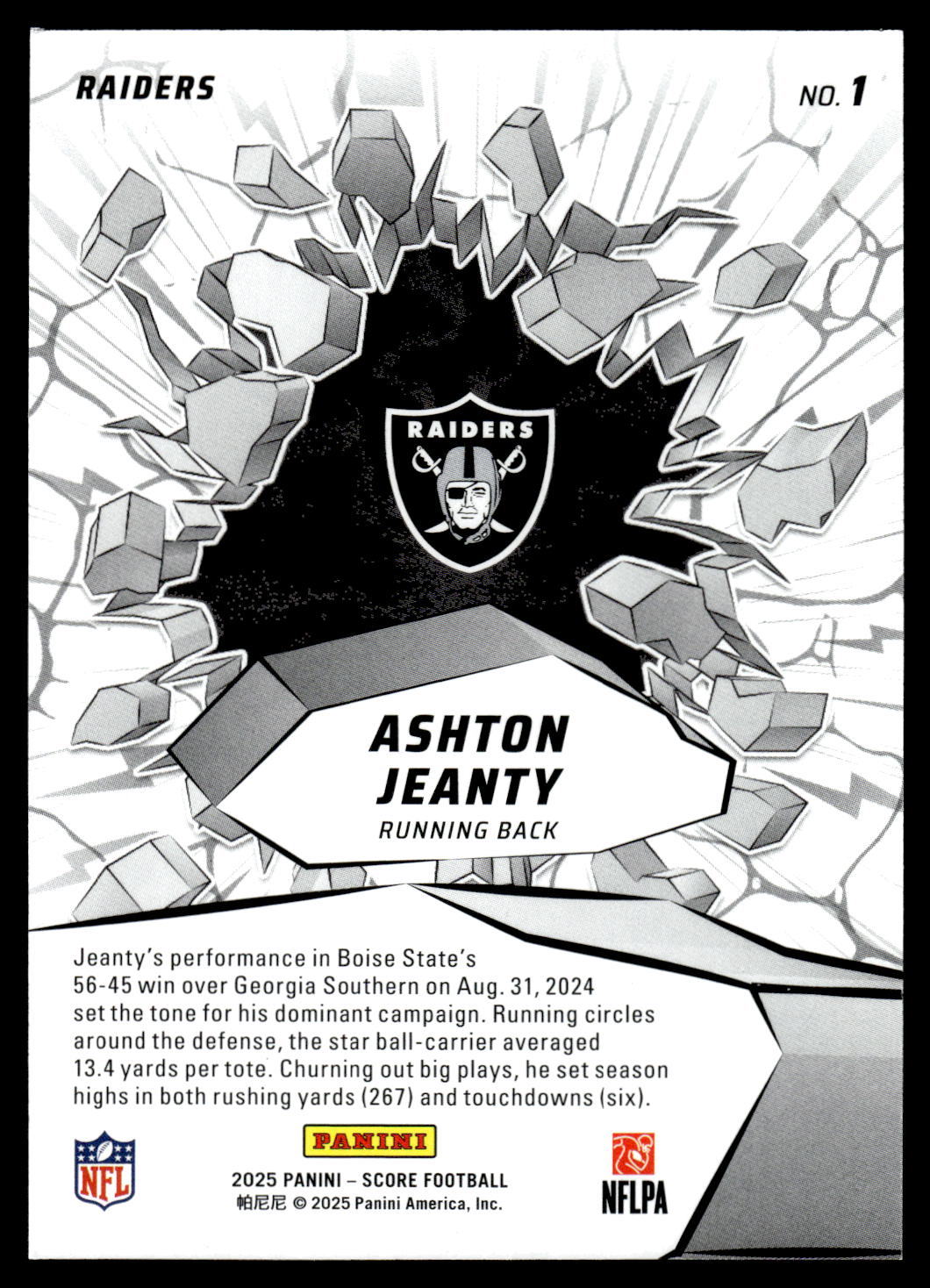 Ashton Jeanty RC 2025 Panini Score NFL Football Card Near Mint or Better 3