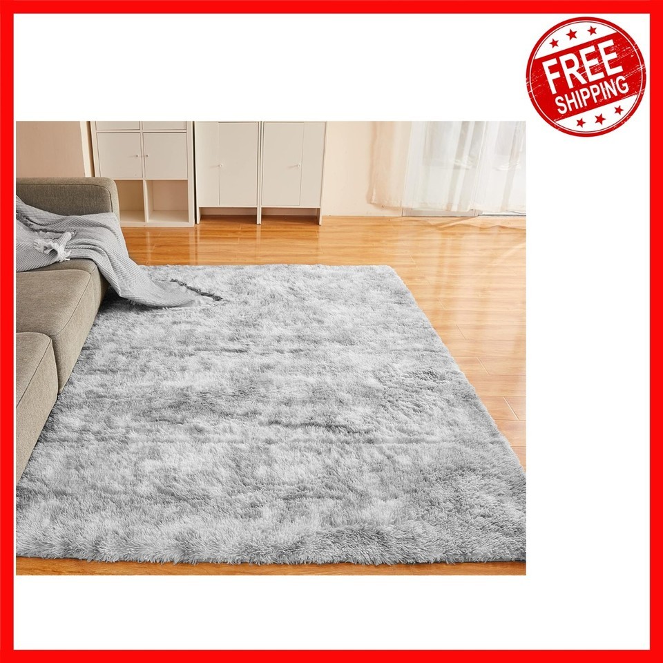 Modern Abstract Light Grey Area Rug 5x7 - Fluffy Cozy Carpet for Living Rooms