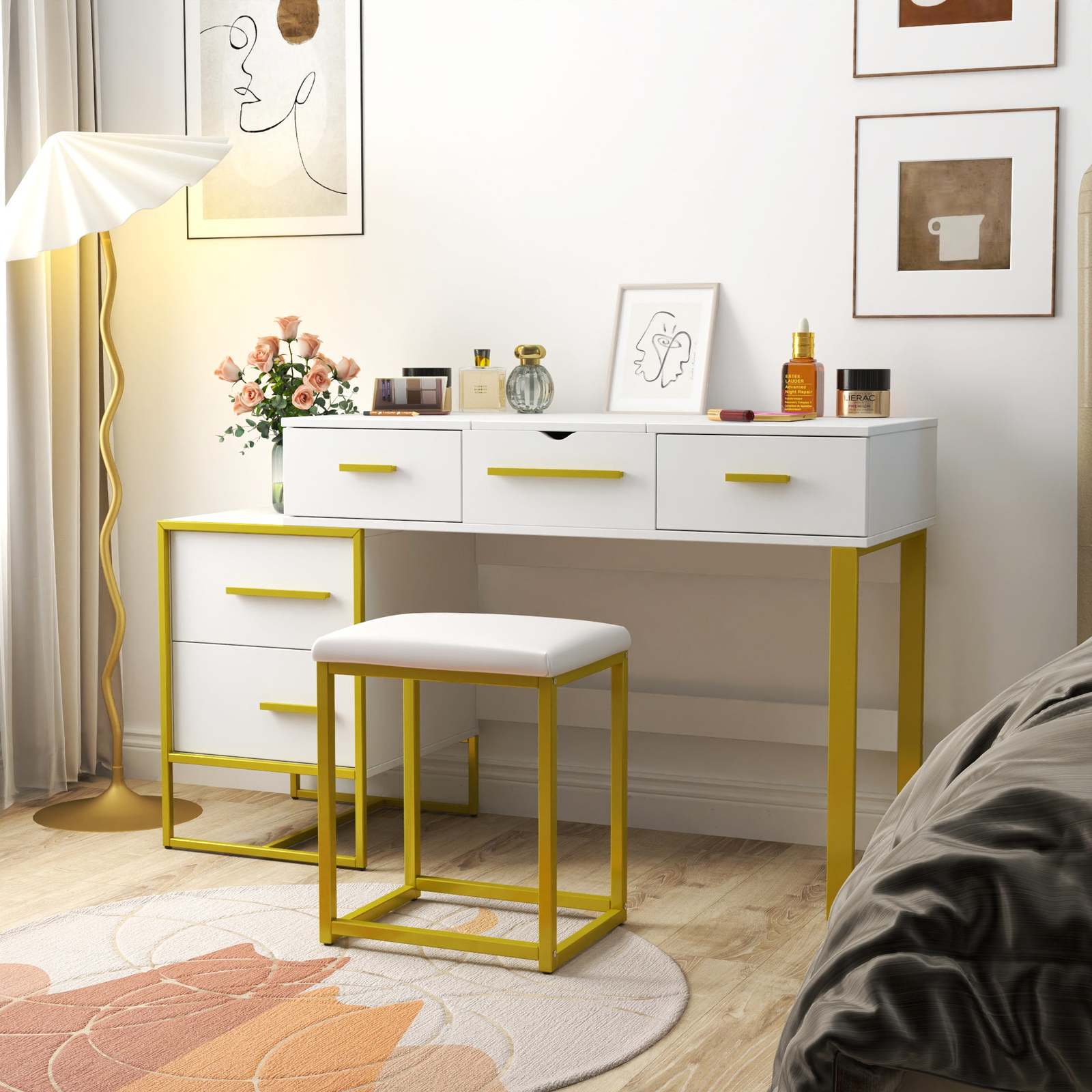 ?Ample Storage Space?- Organize your cosmetics, skincare products, and beauty items in an orderly manner with four storage drawers and a spacious countertop. Bid farewell to a messy desktop and effortlessly find every item you need. You'll absolutely love the convenience it provides.
