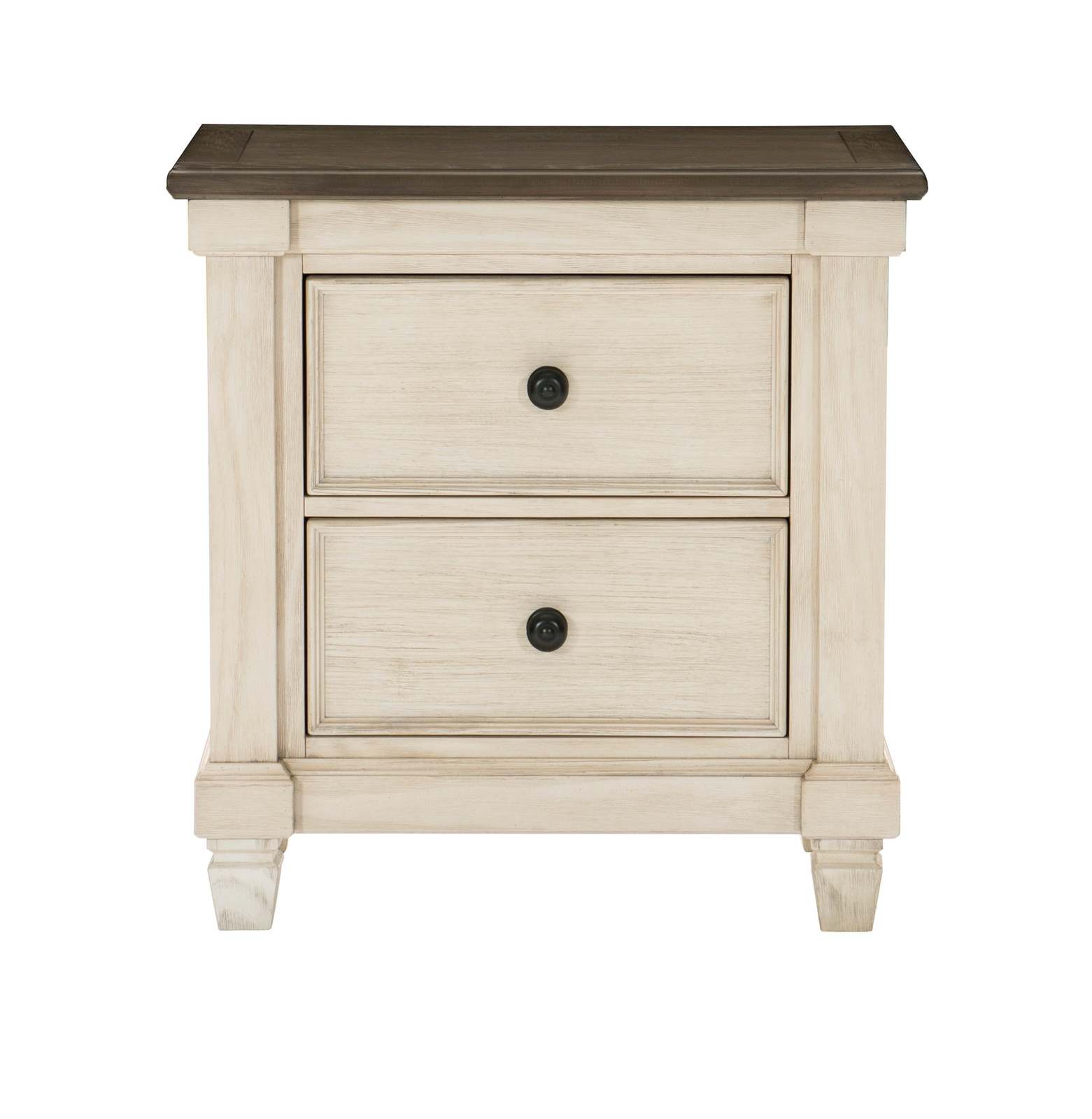 Rustic Nightstand: 2 Drawers, Antique White & Brown