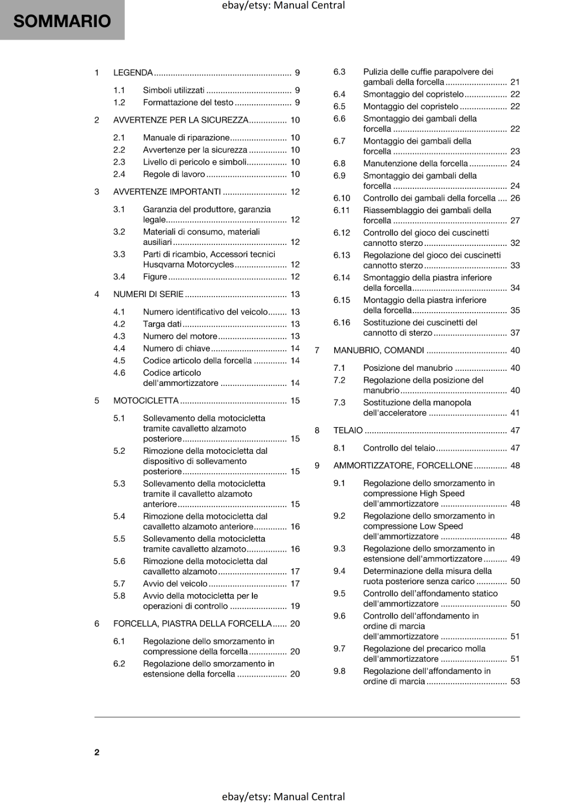 ITALIAN - HUSQVARNA 2022 - 701 SUPERMOTO EU EDITION - MANUALE DI RIPARAZIONE