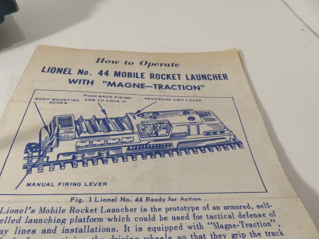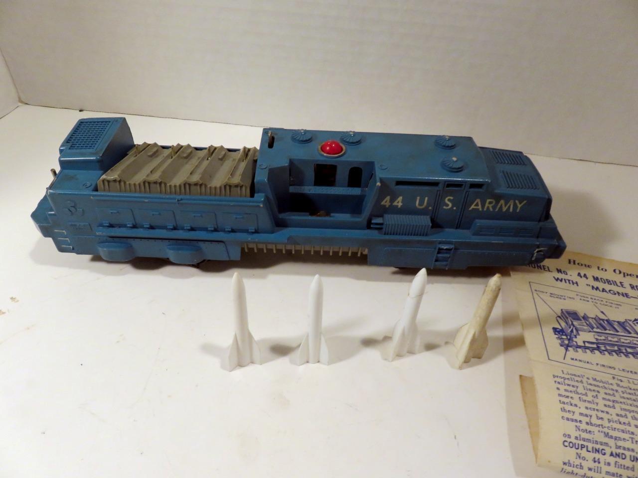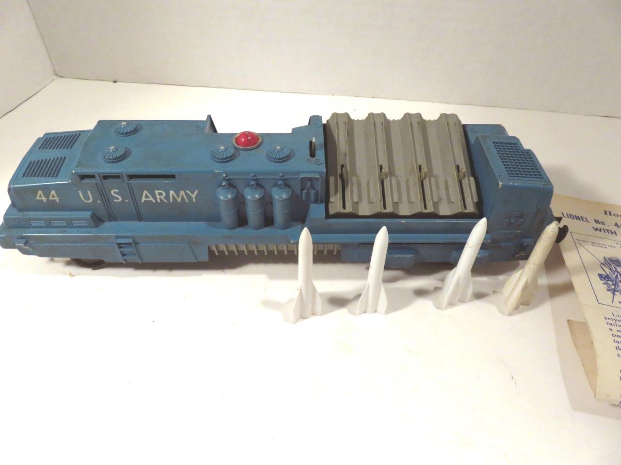 LIONEL POST-WAR TRAINS #44 U.S. ARMY DIESEL LOCO W/MISSLES- GOOD- 0/027- M55