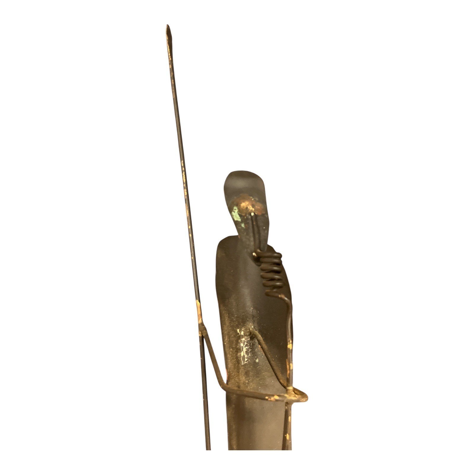 Vintage Brutalist Metal Sculpture – Tribal Figure with Spear – Mid Century Moder