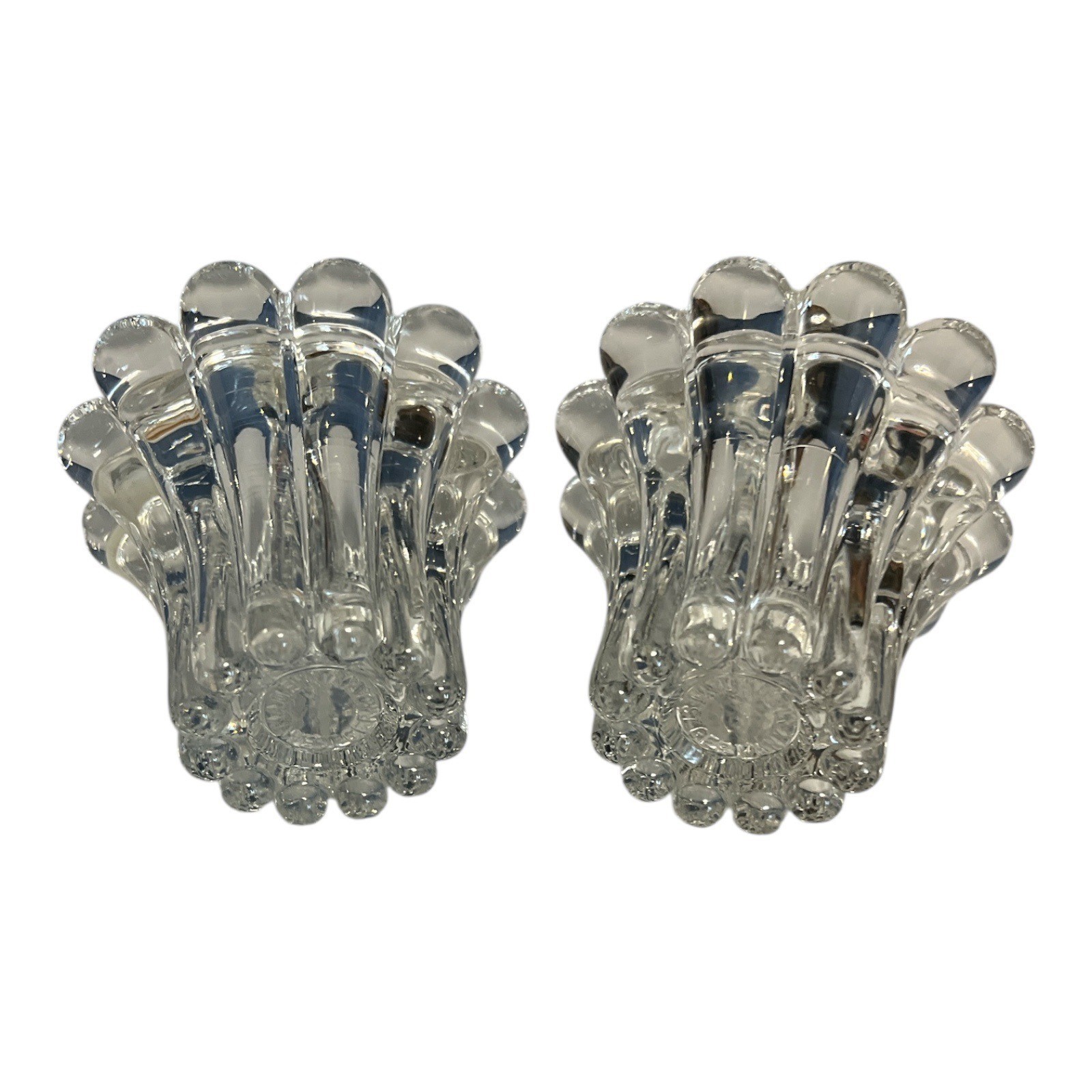 Vintage San Marco West Germany Bubble Glass Crystal Candle Holders – Pair 2.5" T