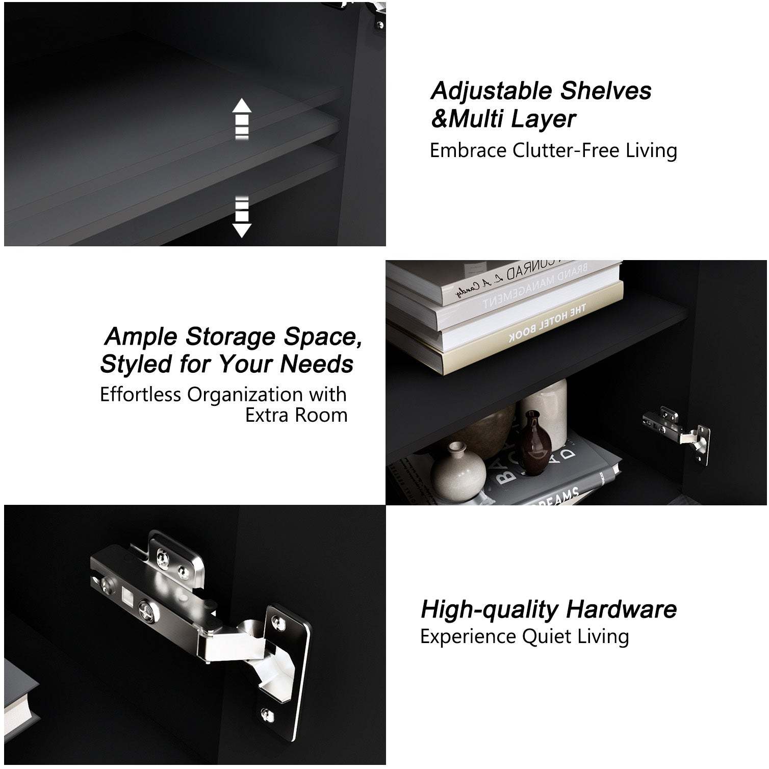 Versatile Black Credenza a?? Ideal as a bold TV stand, chic kitchen buffet, or statement living room storage unit (60'L ?32'H ?15.8'W), harmonizing symmetry and functionality.