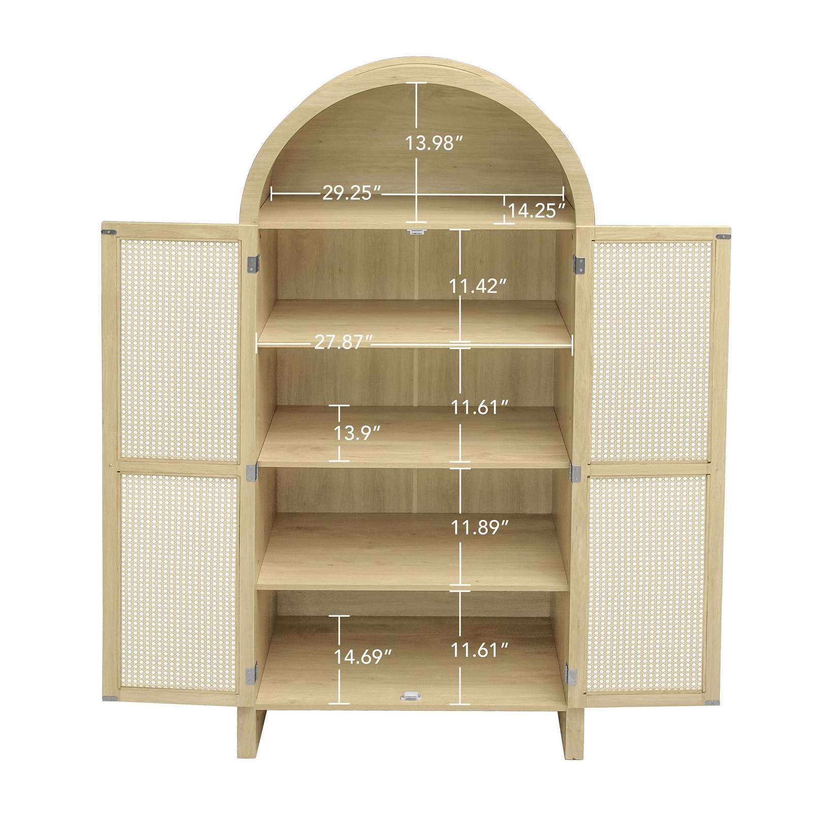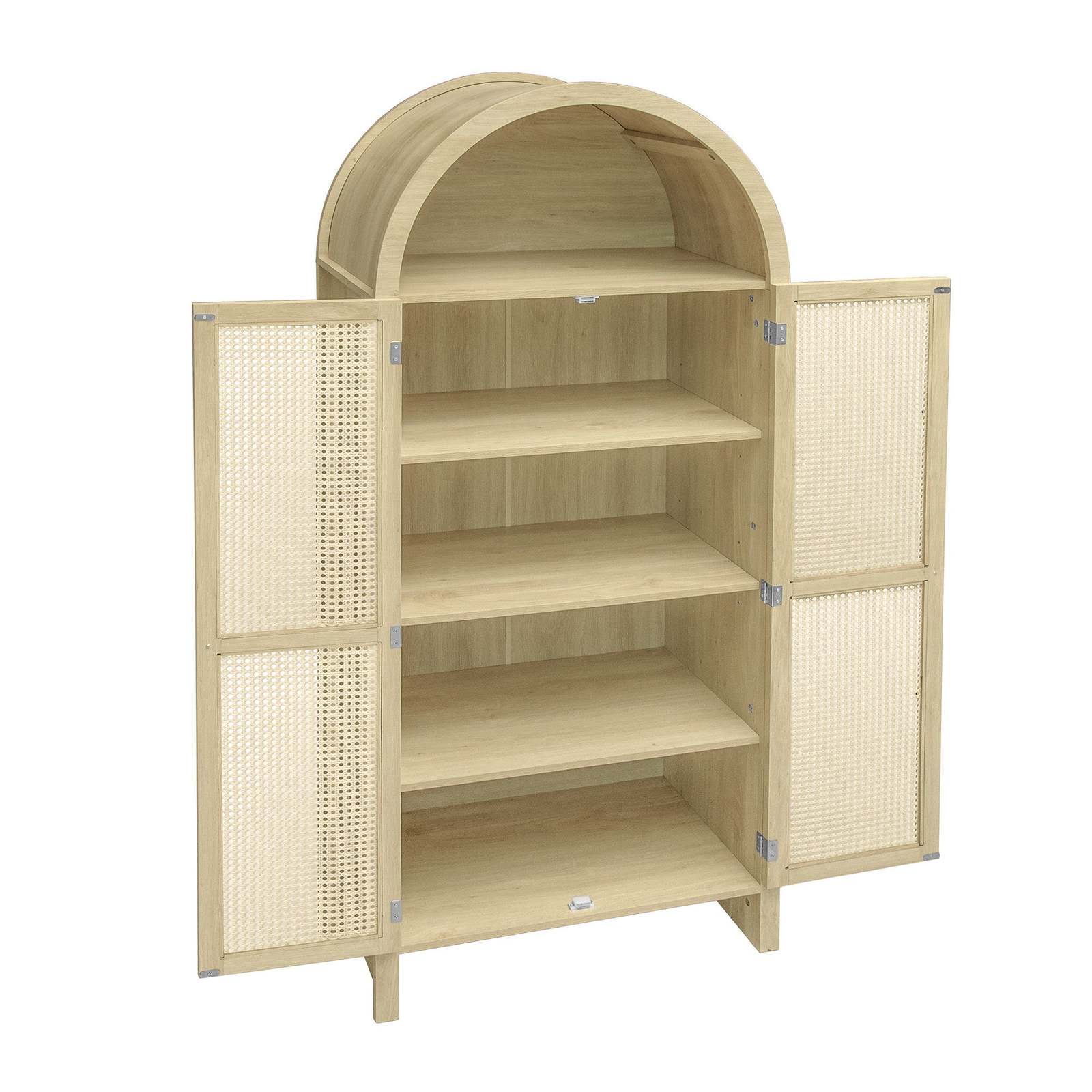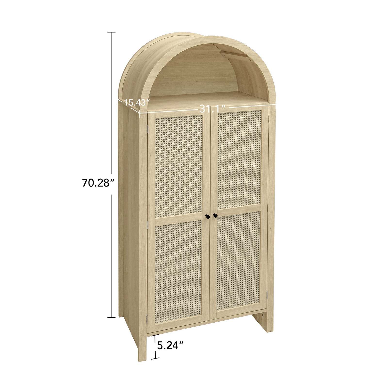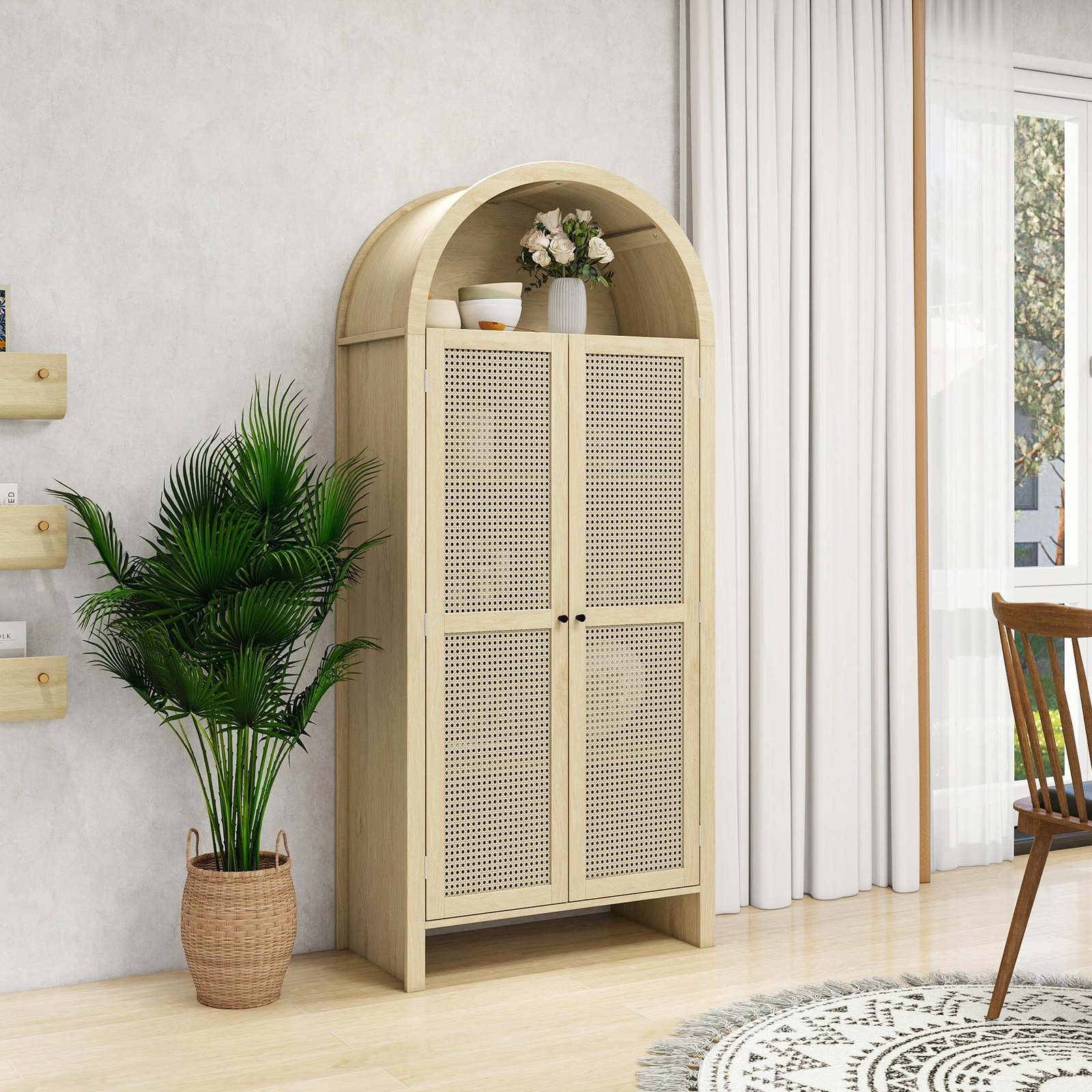 Tall Arched Rattan Kitchen Pantry Cabinet with Drawers, Shelves