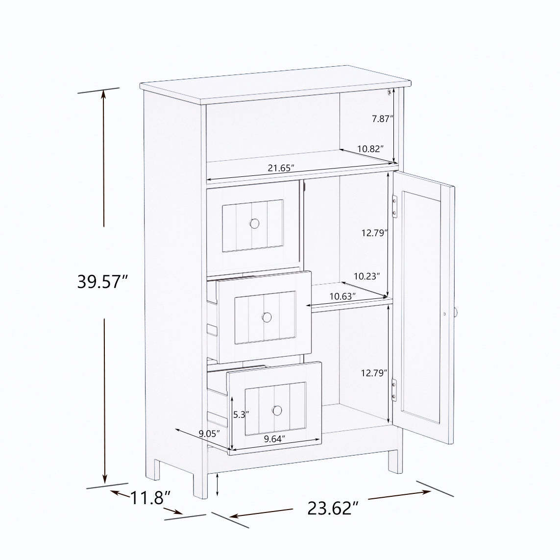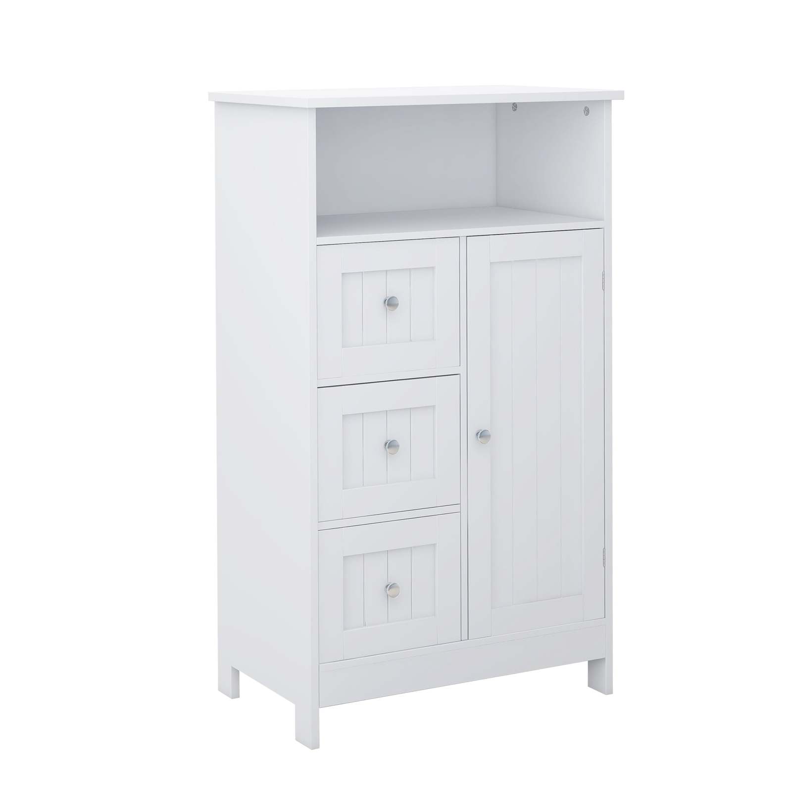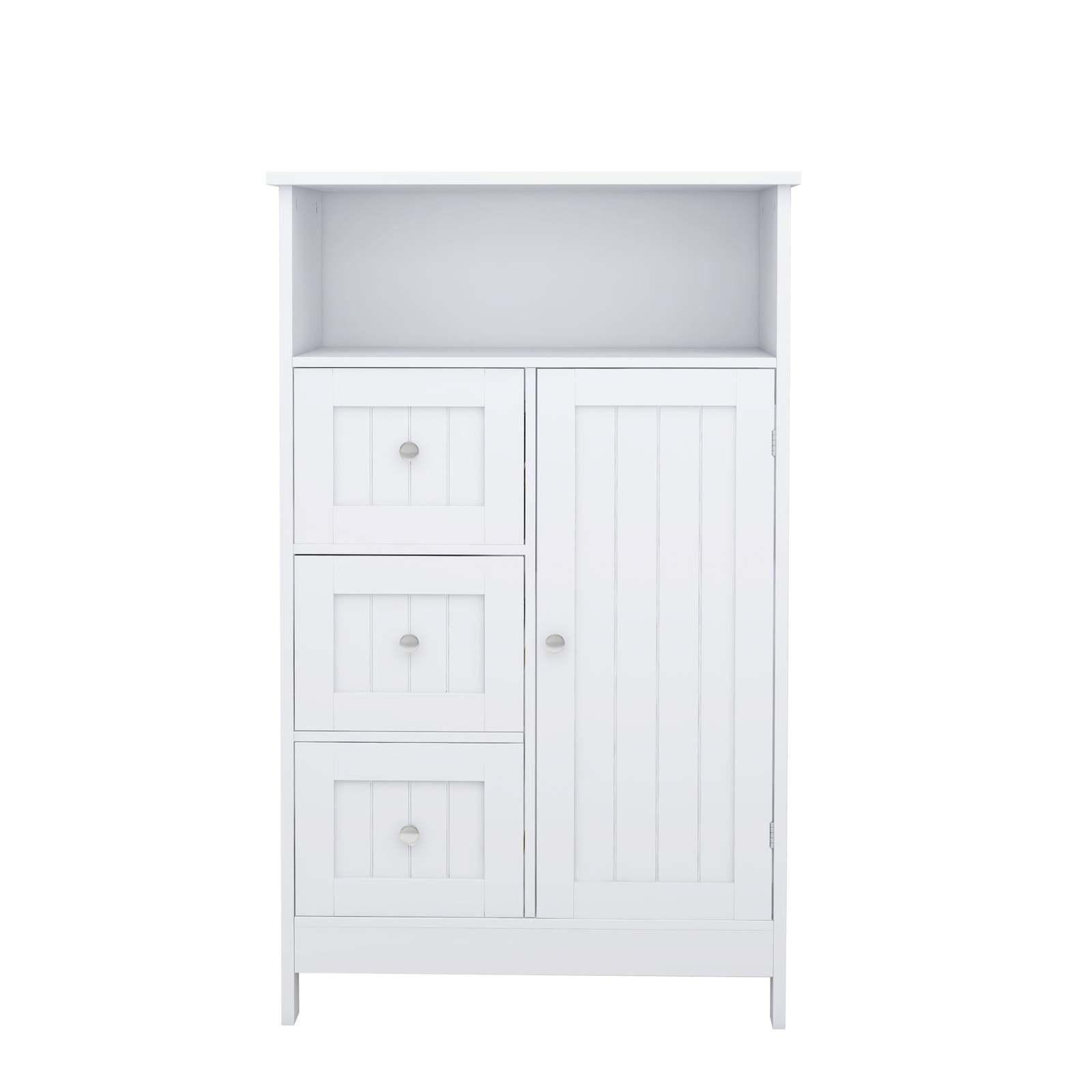 Ample Space: This cabinet features 3 same-sized drawers and 1 cabinet door concealing 1 shelf.It's ideal for getting rid of clutter with room for towels, toiletries, and all the essentials.