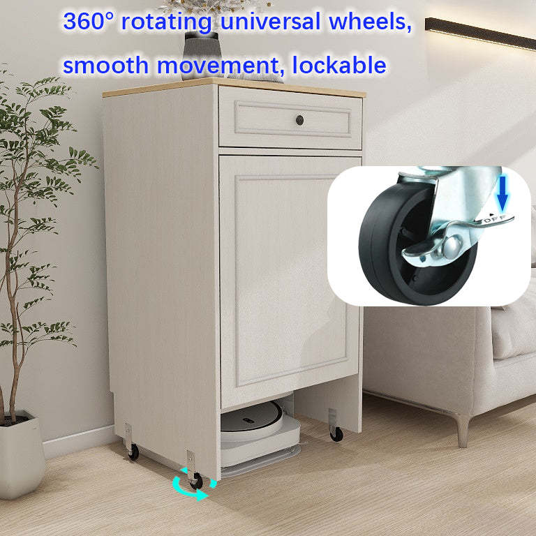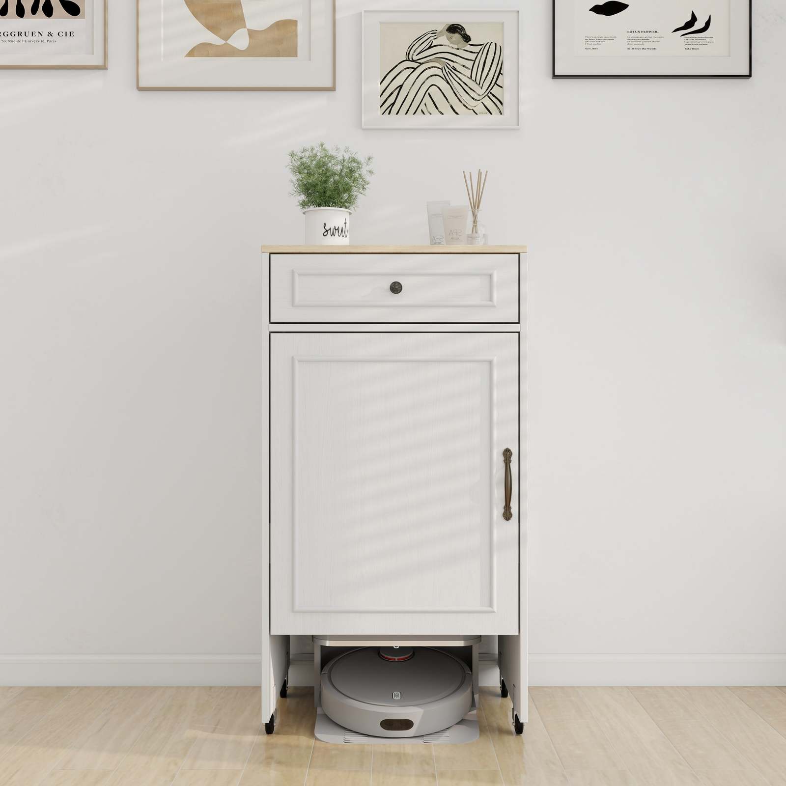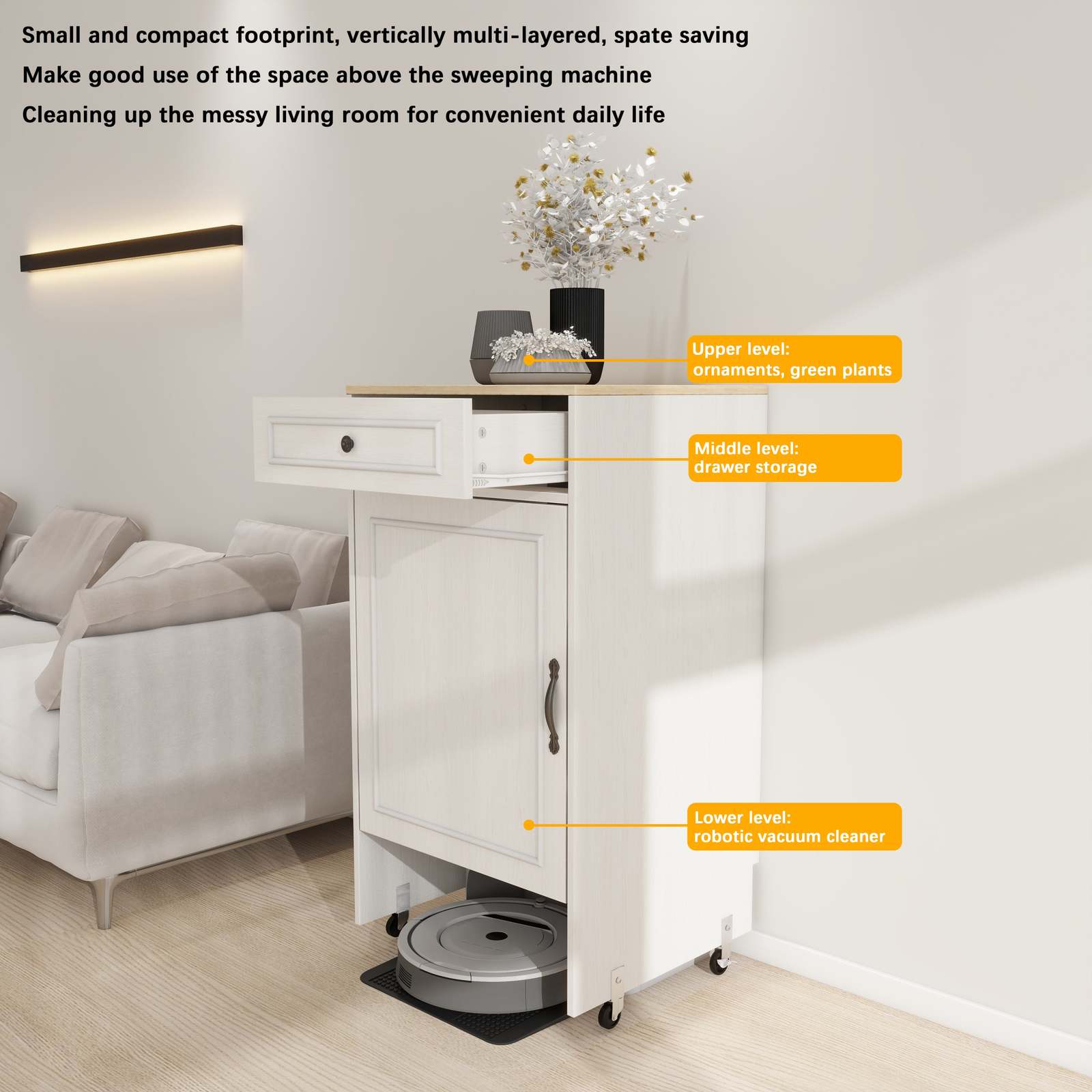 Robot Vacuum Stand Cabinet, Wheels, Storage, Side Table, Antique White