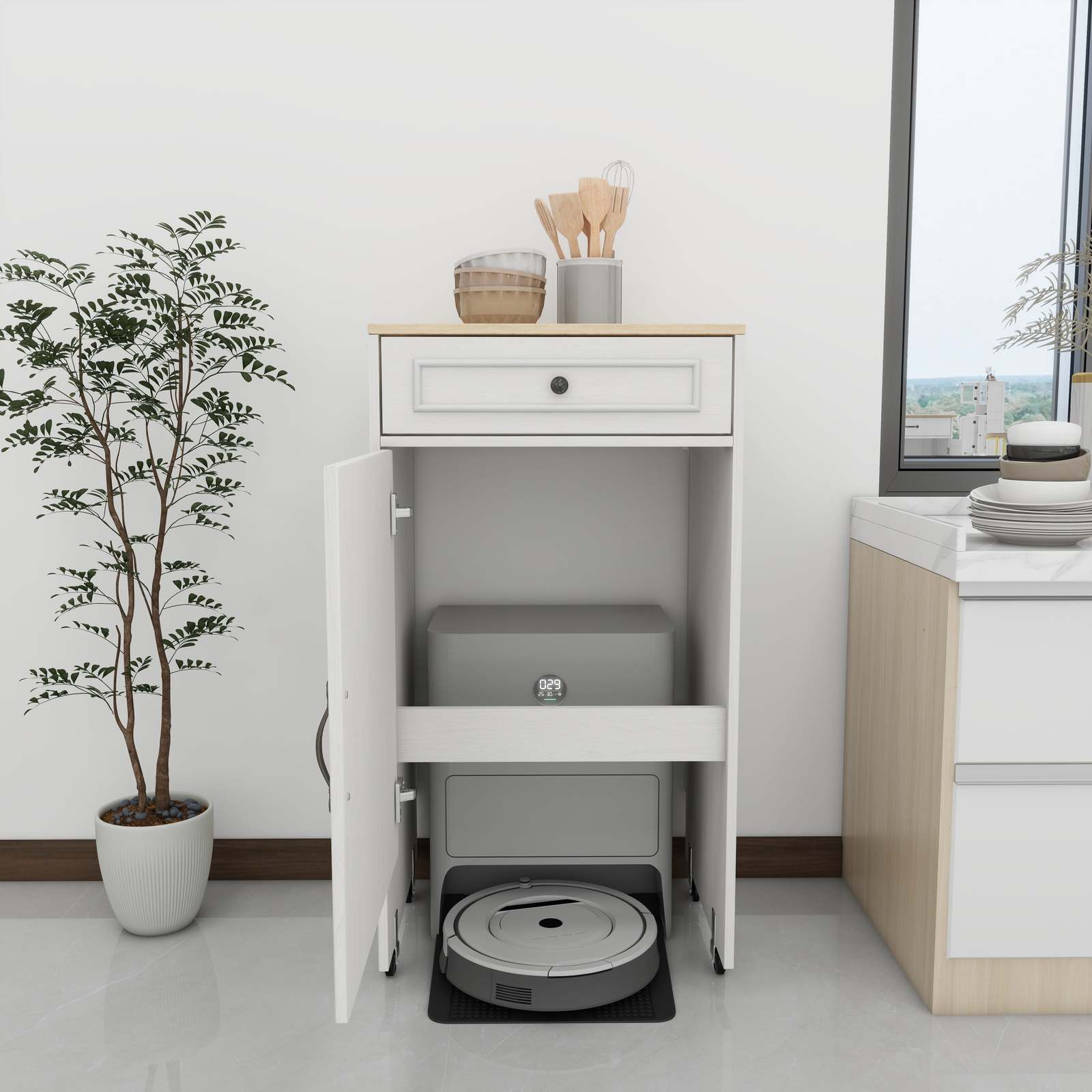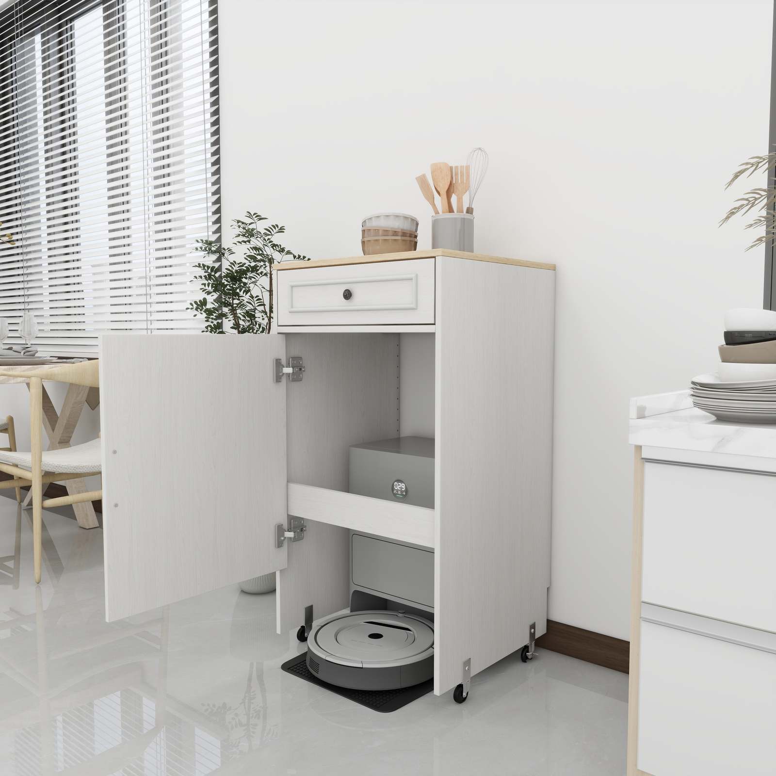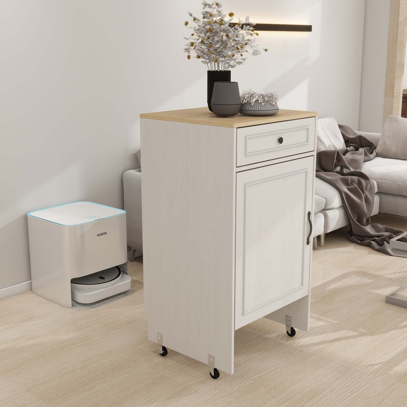 Robot Vacuum Stand Cabinet, Wheels, Storage, Side Table, Antique White