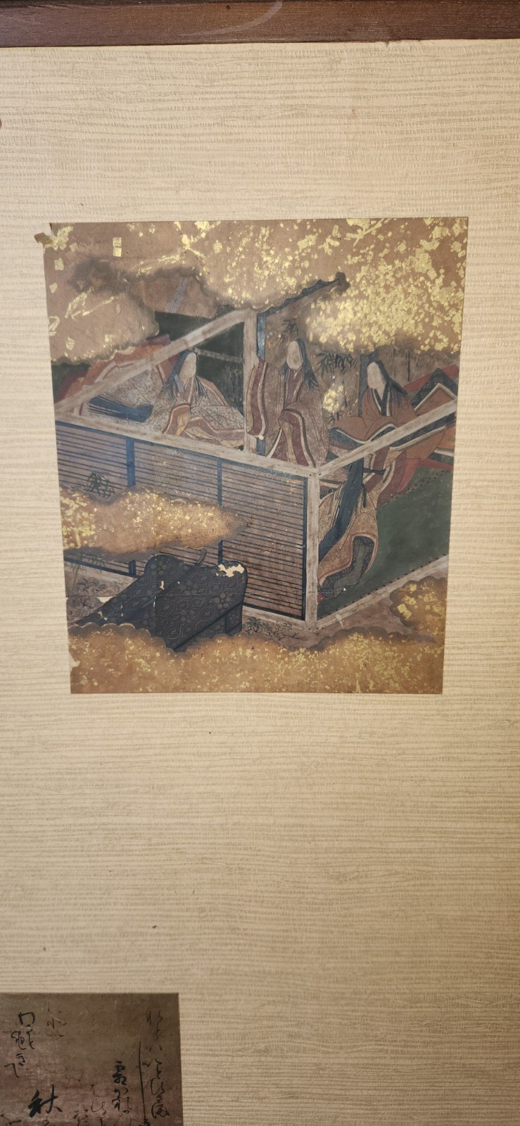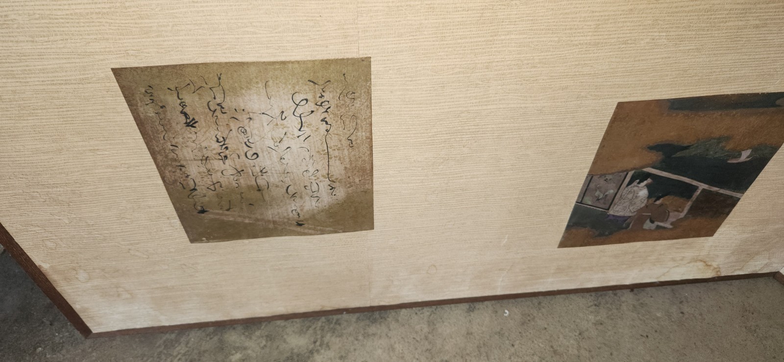 Vintage Oriental Screen Room Divider Seperator Silk? 2 Panel Section Antique