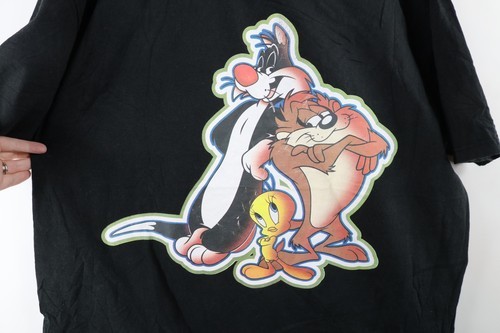 Vtg 90s Looney Tunes Mens XL Faded Sylvester Tweety Bird Taz T-Shirt Black USA