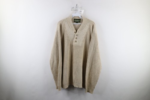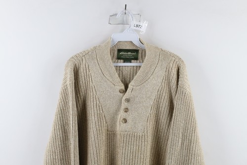 Vintage Eddie Bauer Mens XL Chunky Ribbed Knit Henley Sweater Oatmeal Brown
