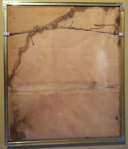 FRAME NEEDS TO BE REPLACED. PAINTING IS IN GOOD CONDITION AS DISPLAYED IN THE PHOTO GALLERY. CARDBOARD BACKING PROTECTING CANVAS HAS WATERMARKS.