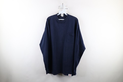 Vintage 90s Dickies Mens XL Faded Spell Out Long Sleeve Pocket T-Shirt Blue
