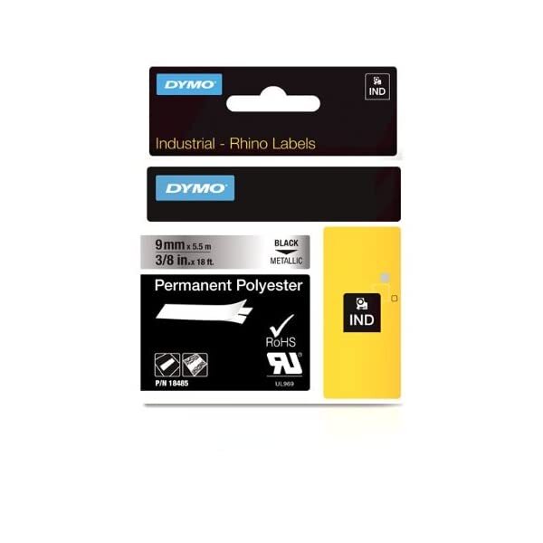 Product Name: Dymo Rhino Industrial Labels Permanent Polyester 9mm x 5.5m - Black on Metallic