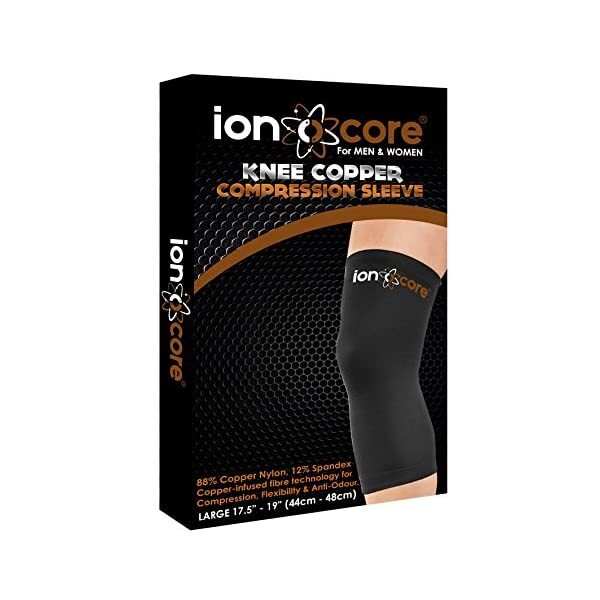 Product Name: ionocore Copper compression knee support sleeve for joint support and recovery, Super slim, comfortable, lightweight and anti-slip knee brace with double-silicon wave (LARGE, 17.5-19)