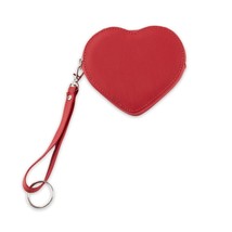Small Red Leather Heart-Shaped Card Case with Zipper Closure and Arm Strap