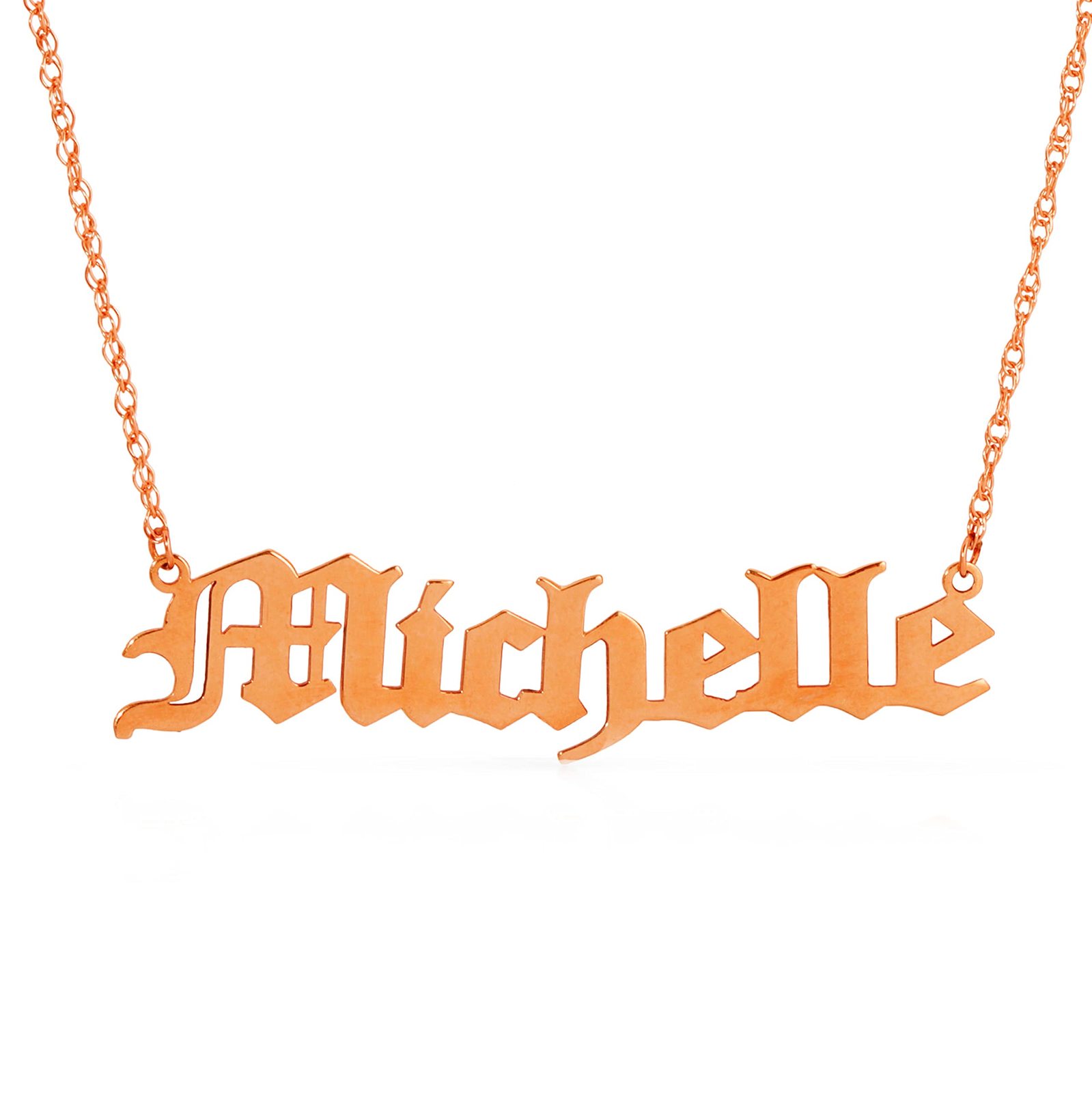 14K. SOLID GOLD NECKLACE PERSONALIZED NAME OLD ENGLISH FONT