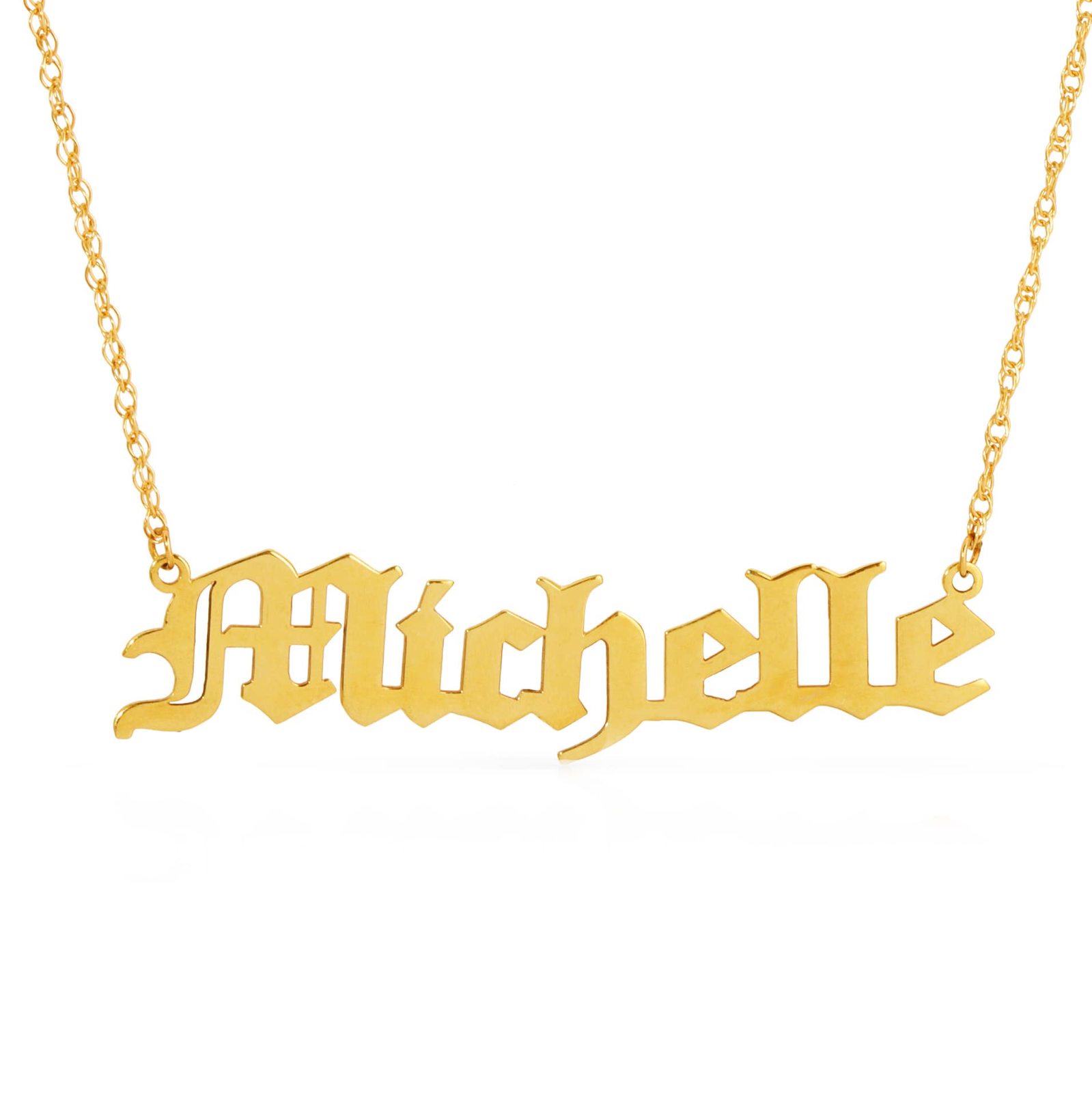 14K. SOLID GOLD NECKLACE PERSONALIZED NAME OLD ENGLISH FONT |