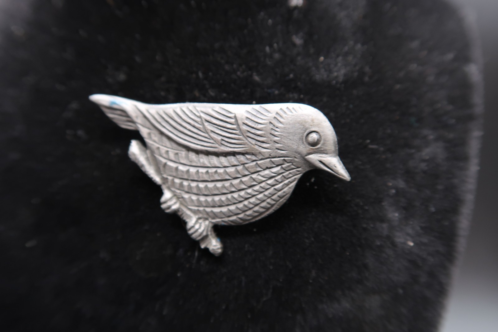 Vtg Fat Bird on Branch Brooch Unsigned Silver Tone Beautiful Fashion Jewelry