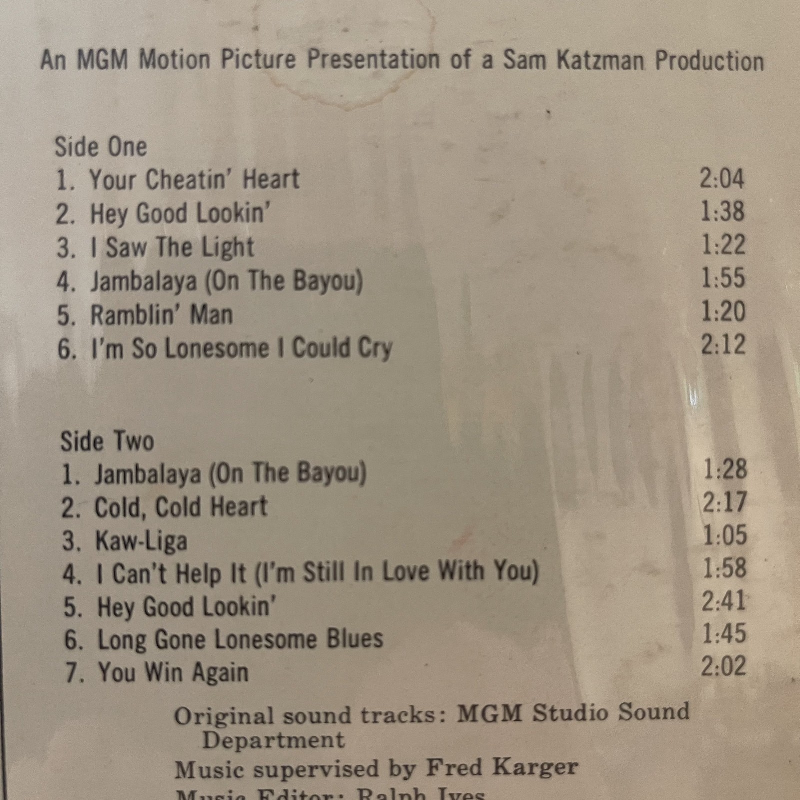 I Saw the Light, Hey Good Lookin' Jambalaya |
