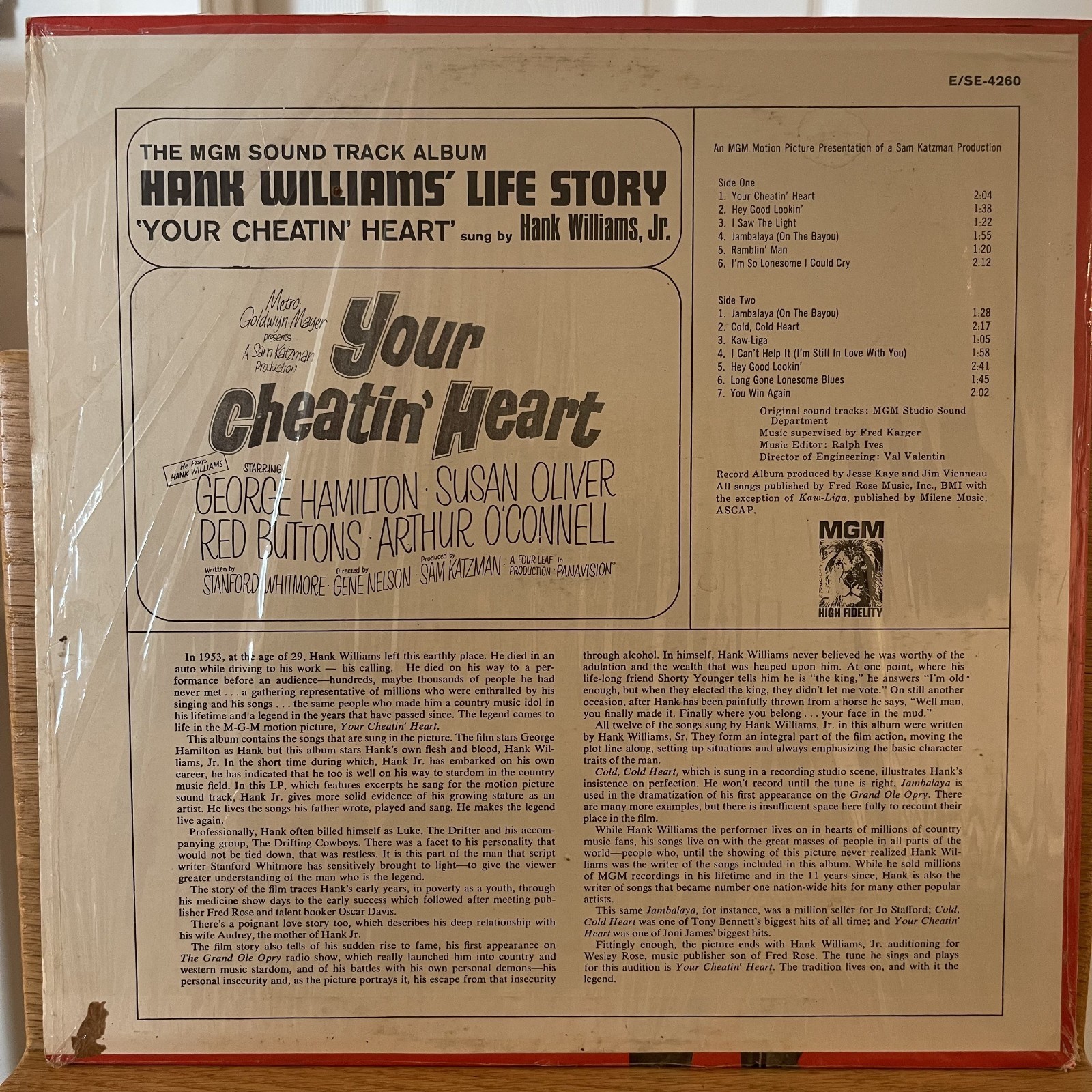 Hank Williams Jr. Your Cheatin' Heart Soundtrack Vinyl LP MGM SE-4260 Near Mint