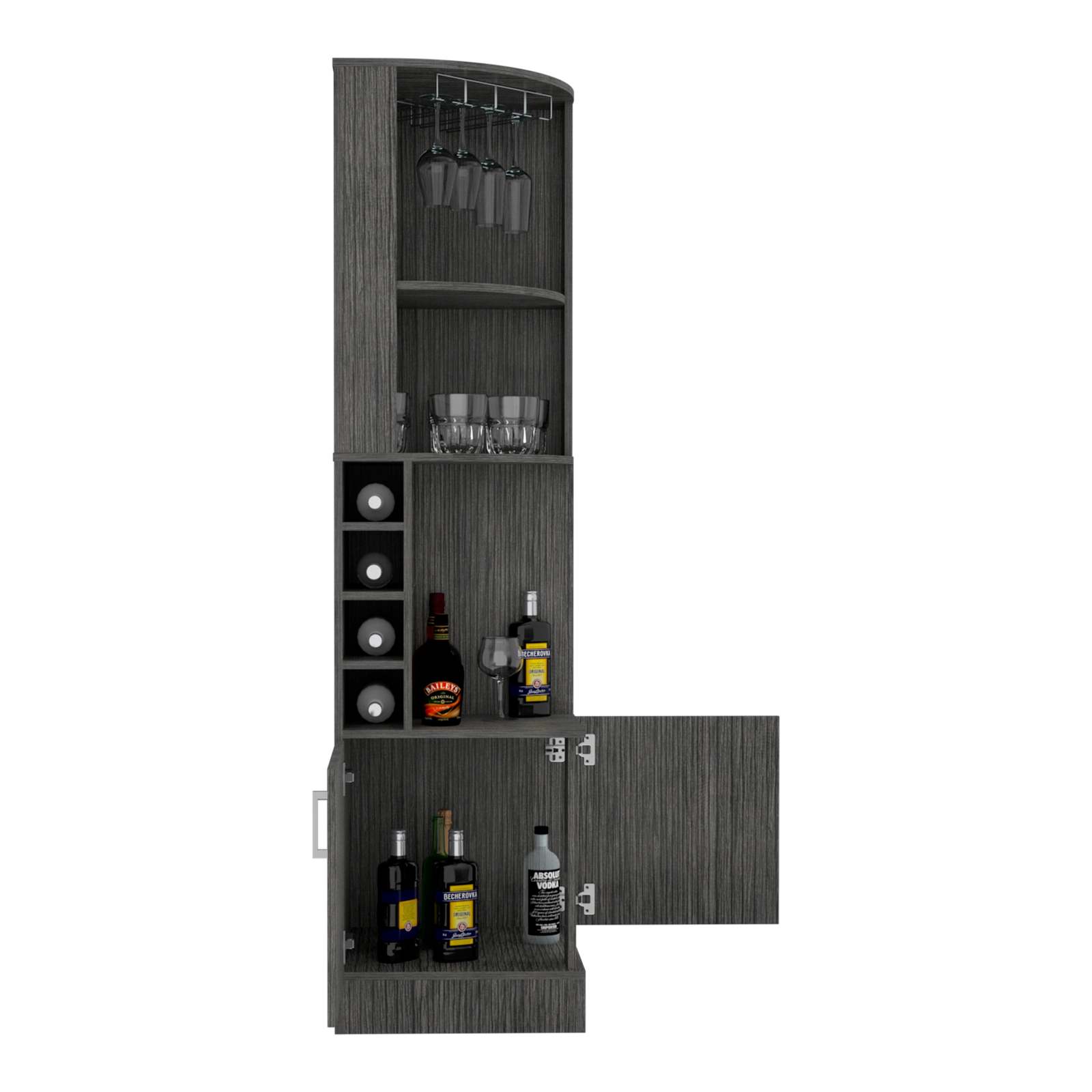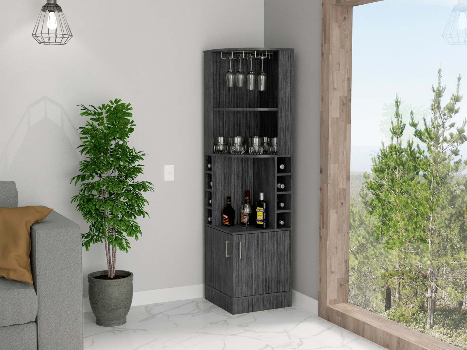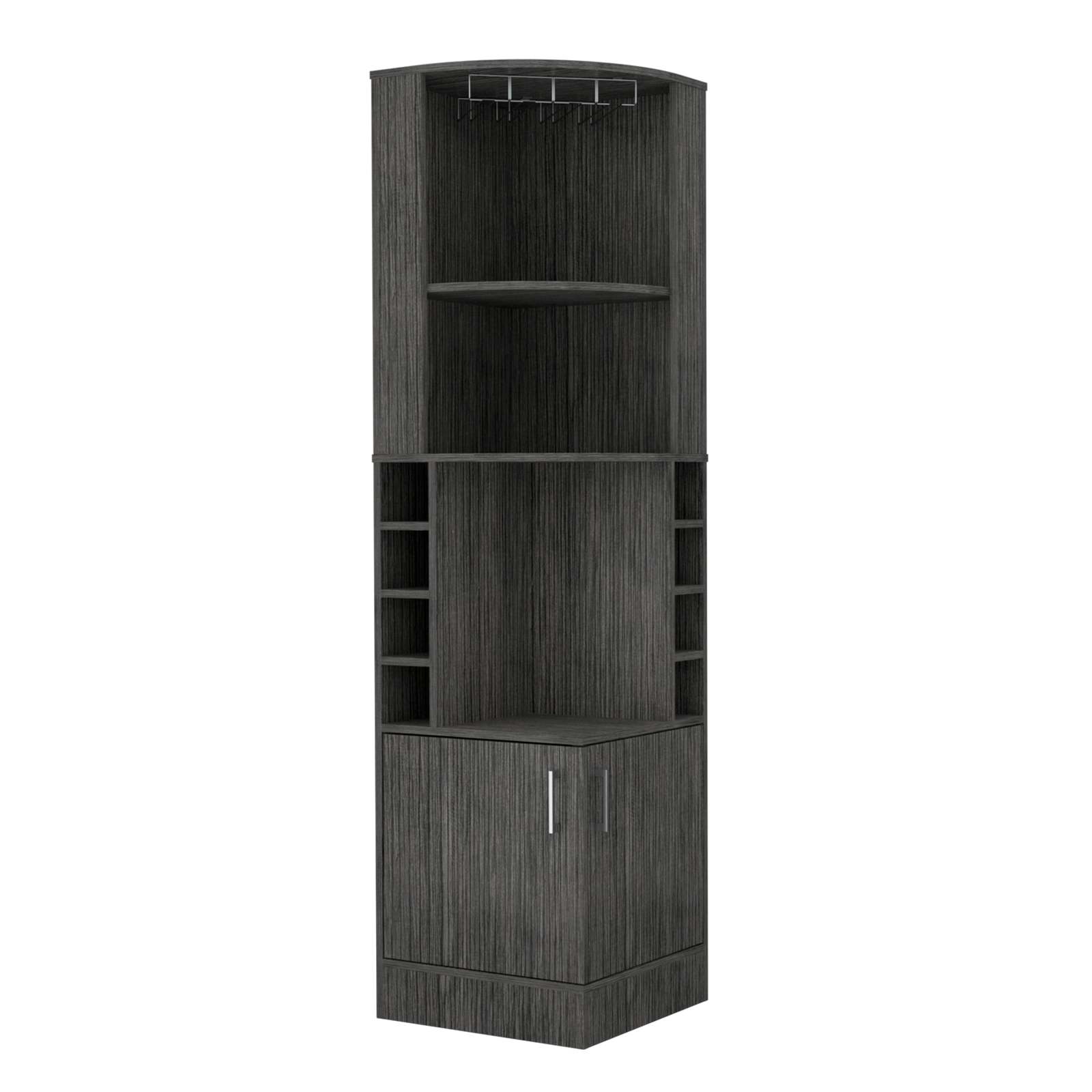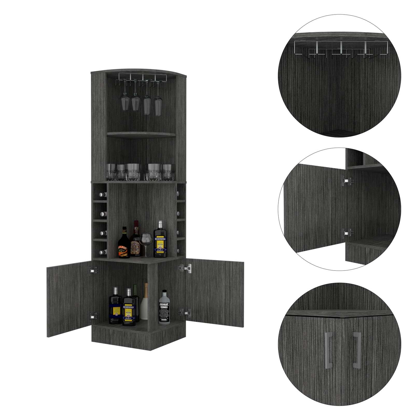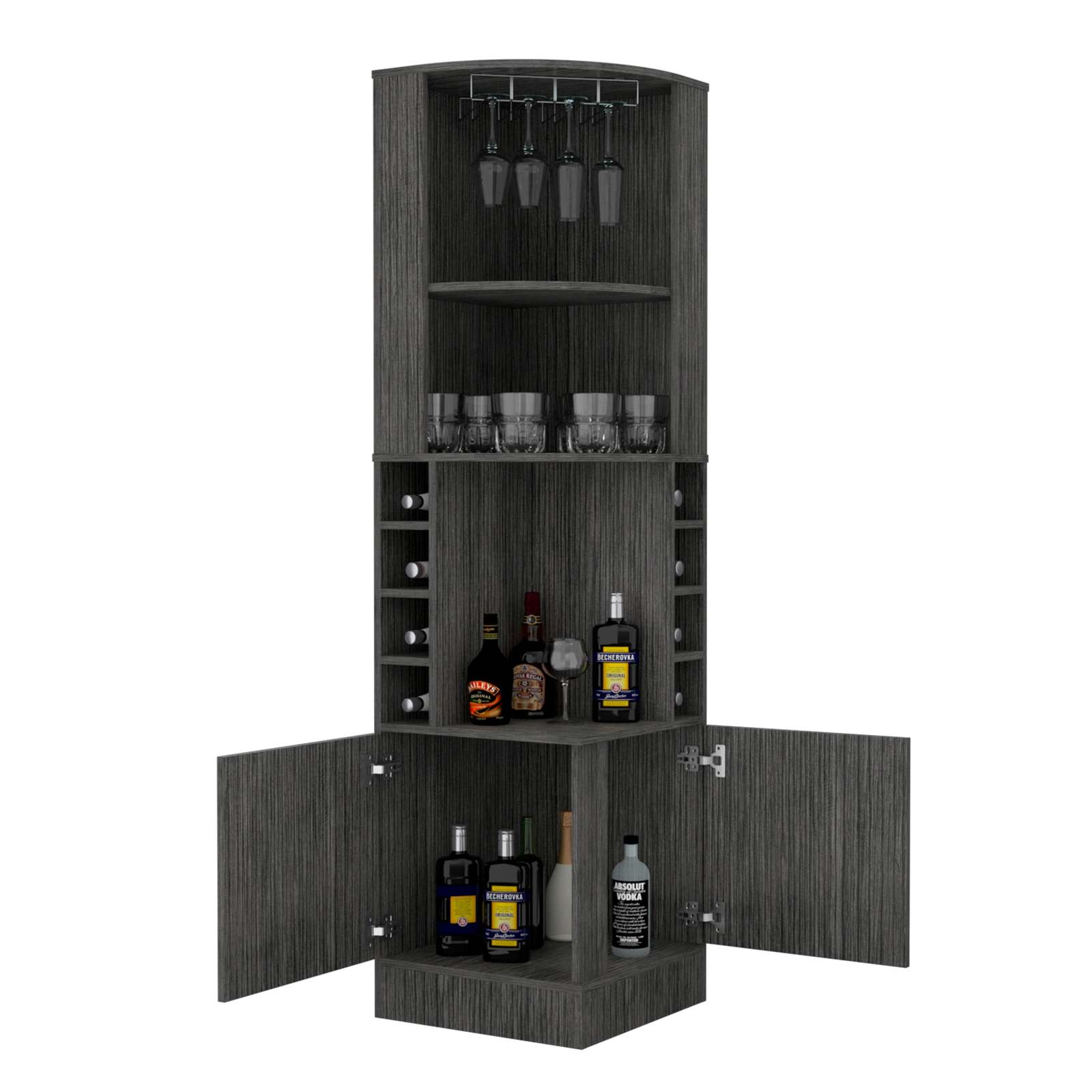 Syrah Corner Bar Cabinet - 8 Bottle, Double Door, Smokey Oak