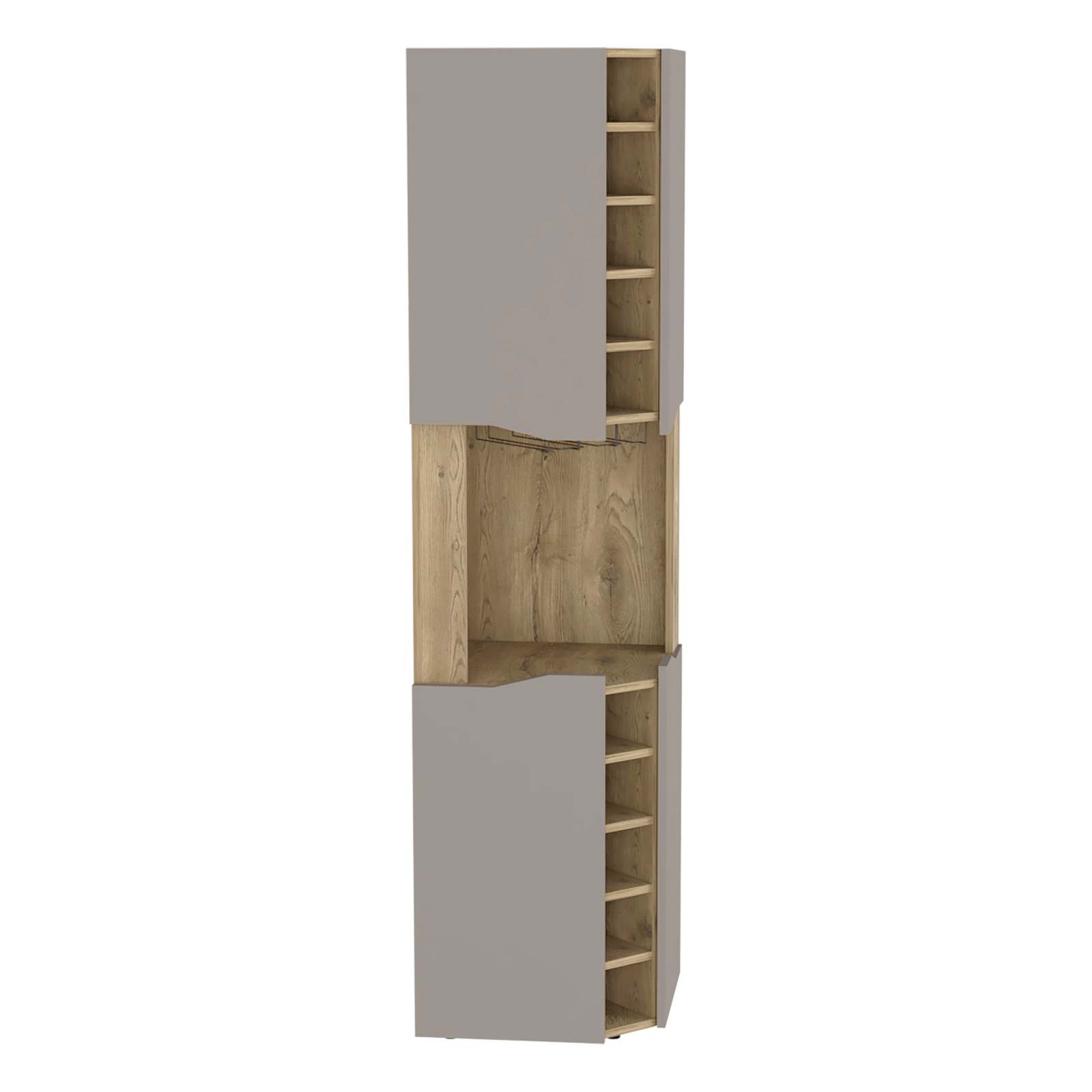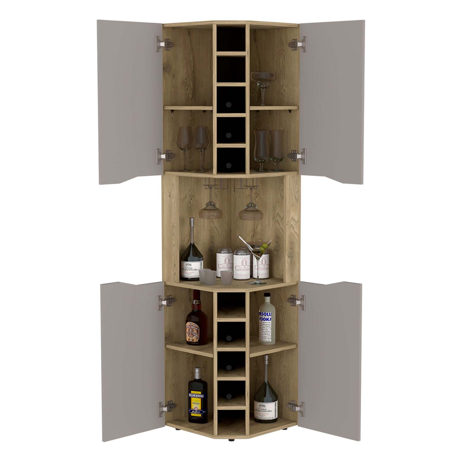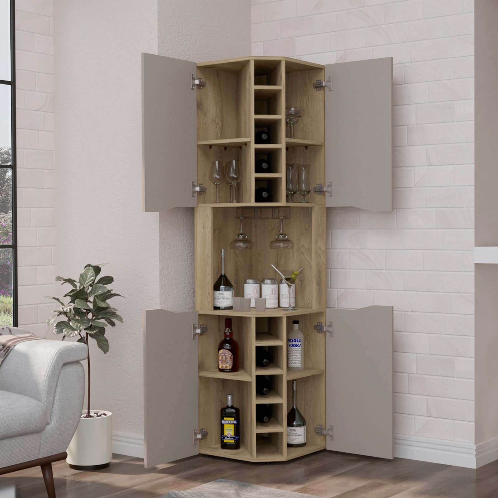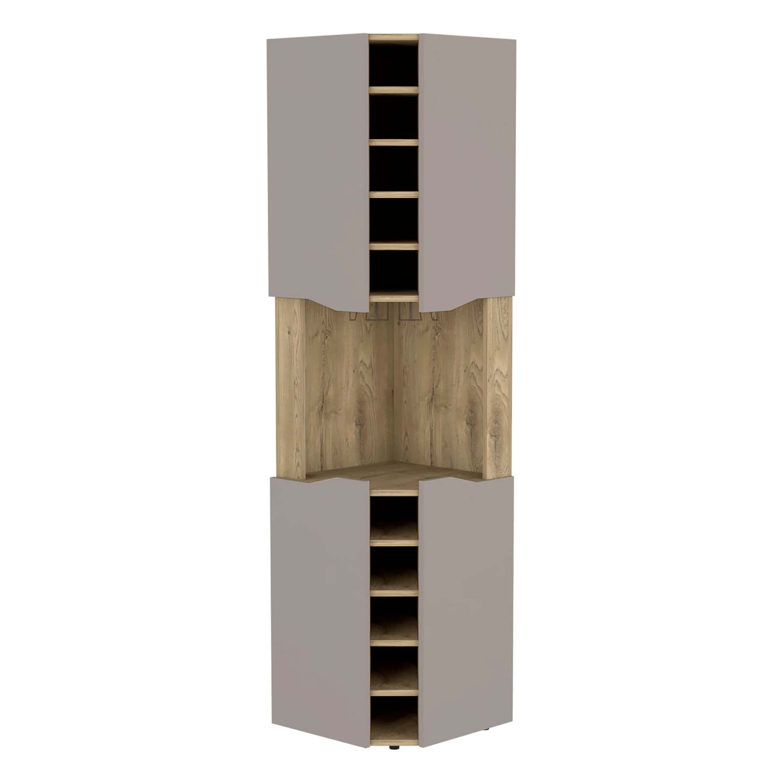 Bell Corner Bar Cabinet: Aged Oak/Taupe for Living Room