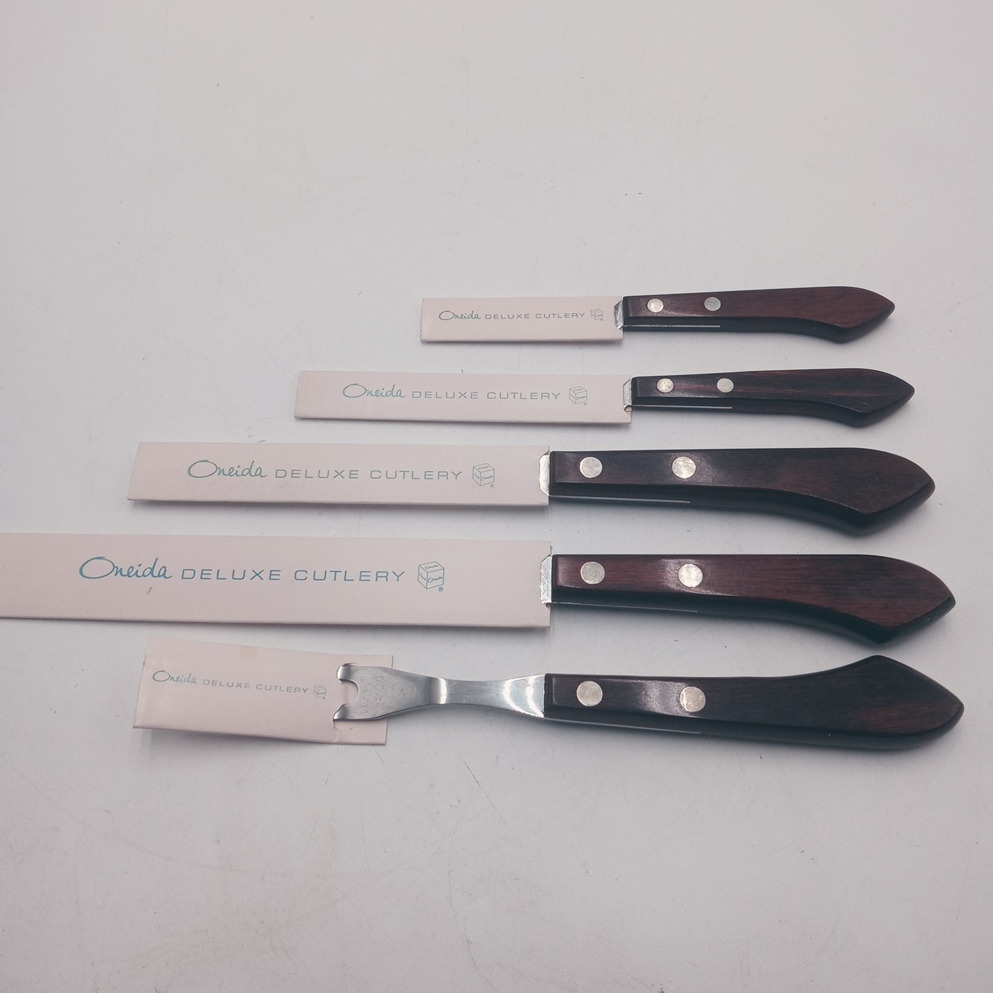 Oneida Deluxe Stainless Knives Wood Handle #102/124/131/137/152 Lot of 5