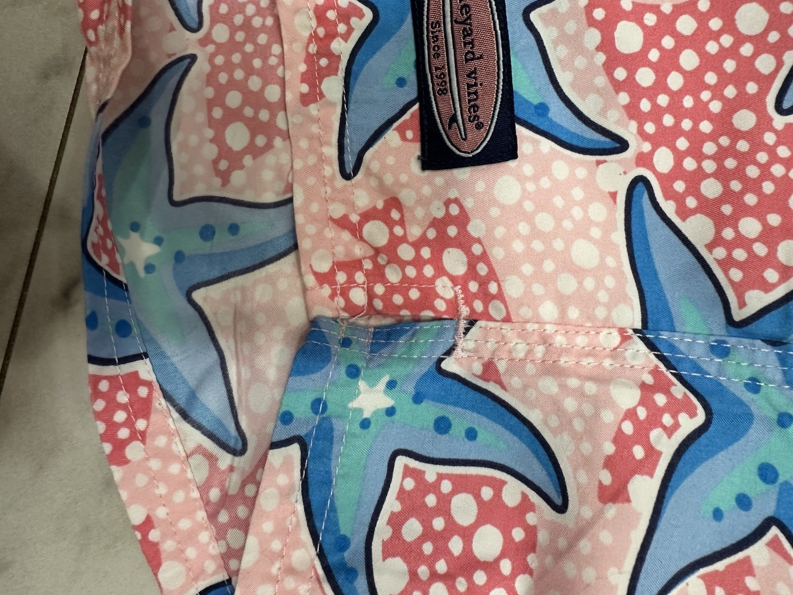 VINEYARD VINES BLUE STAR FISH SWIM SHORTS PINK PULL STRING POCKETS LARGE