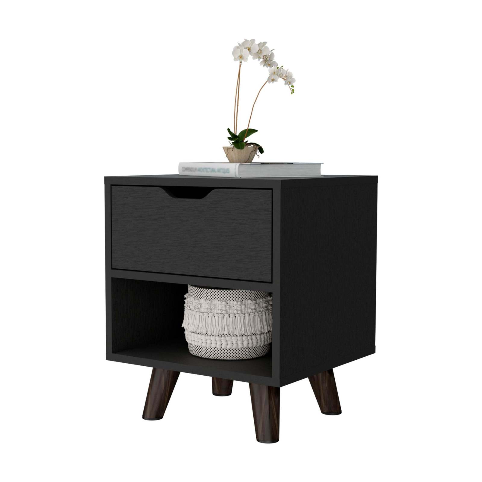 Carthage Nightstand: 1-Drawer, Open Shelf, Wood Legs Bedroom Table